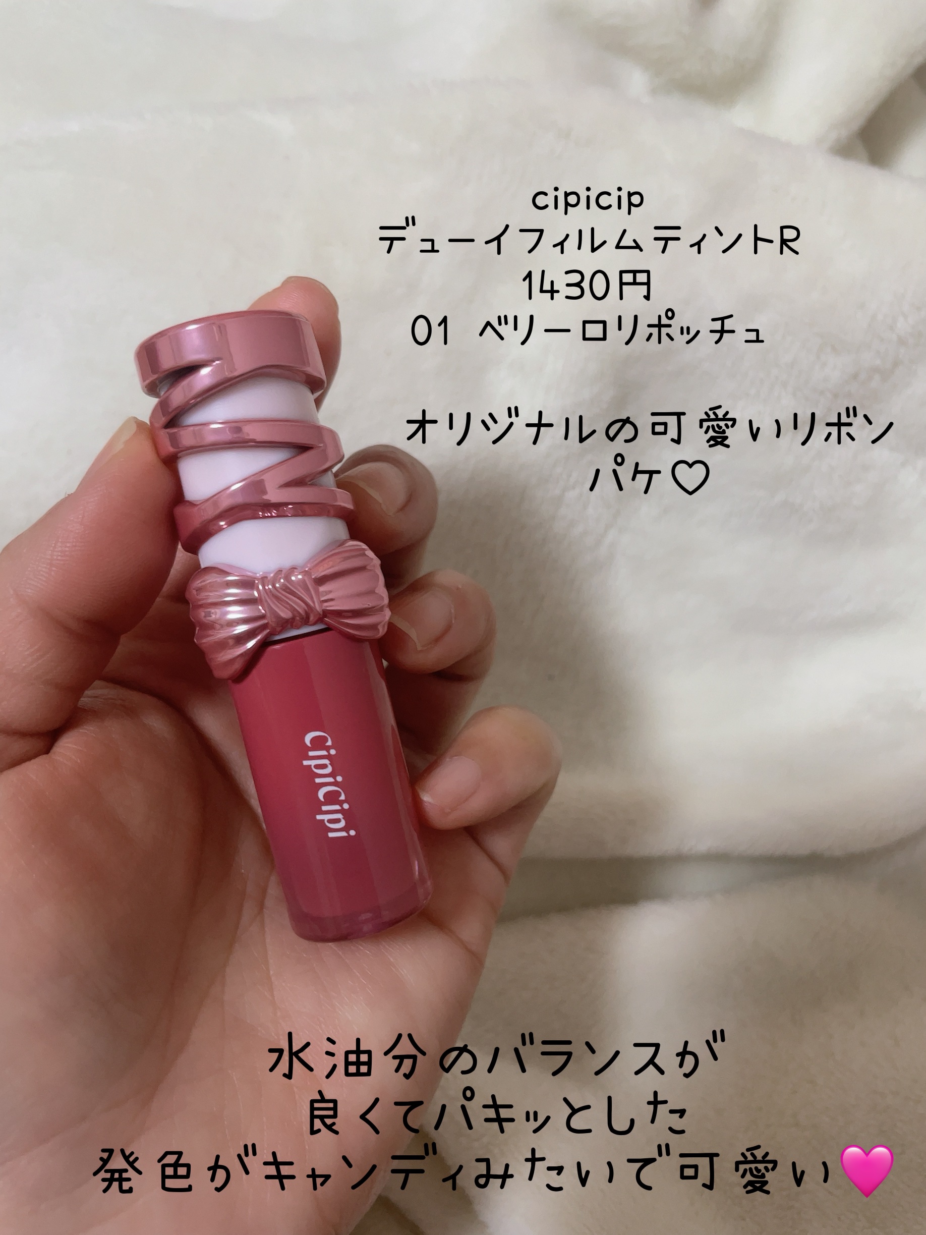 新作コスメ˗ˏˋꪔᥱꪔ᥆ᝰ✍︎ˎˊ˗❁.˚‧º‧‧º·˚.❁ 可愛さ全開🎀リボンリップ❁.˚‧º‧‧º·˚.❁CipiCipiデューイフィルムティント R¥1,43010月23日(木)期間限定POPUPストアにて先行発売11月17日(月) 全...