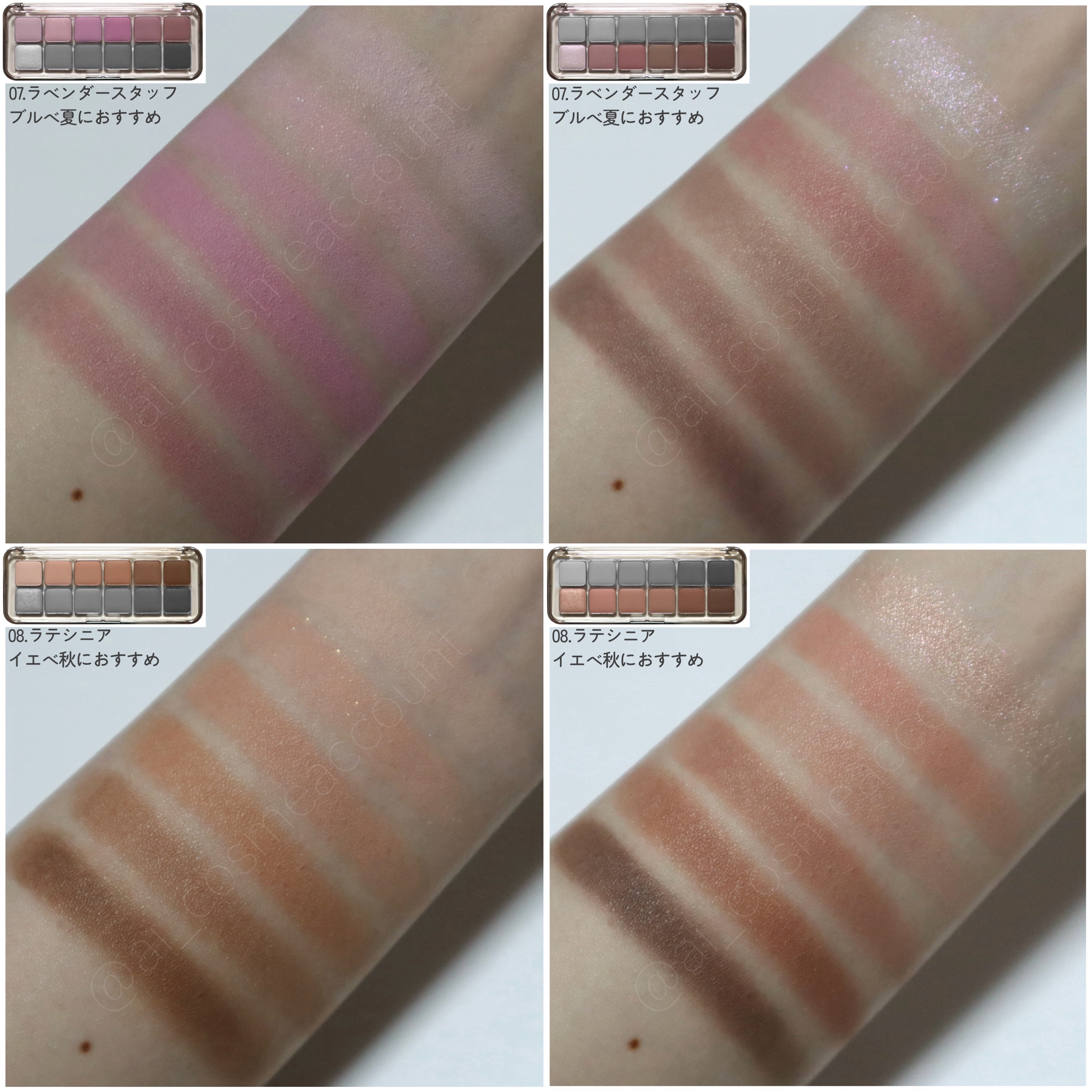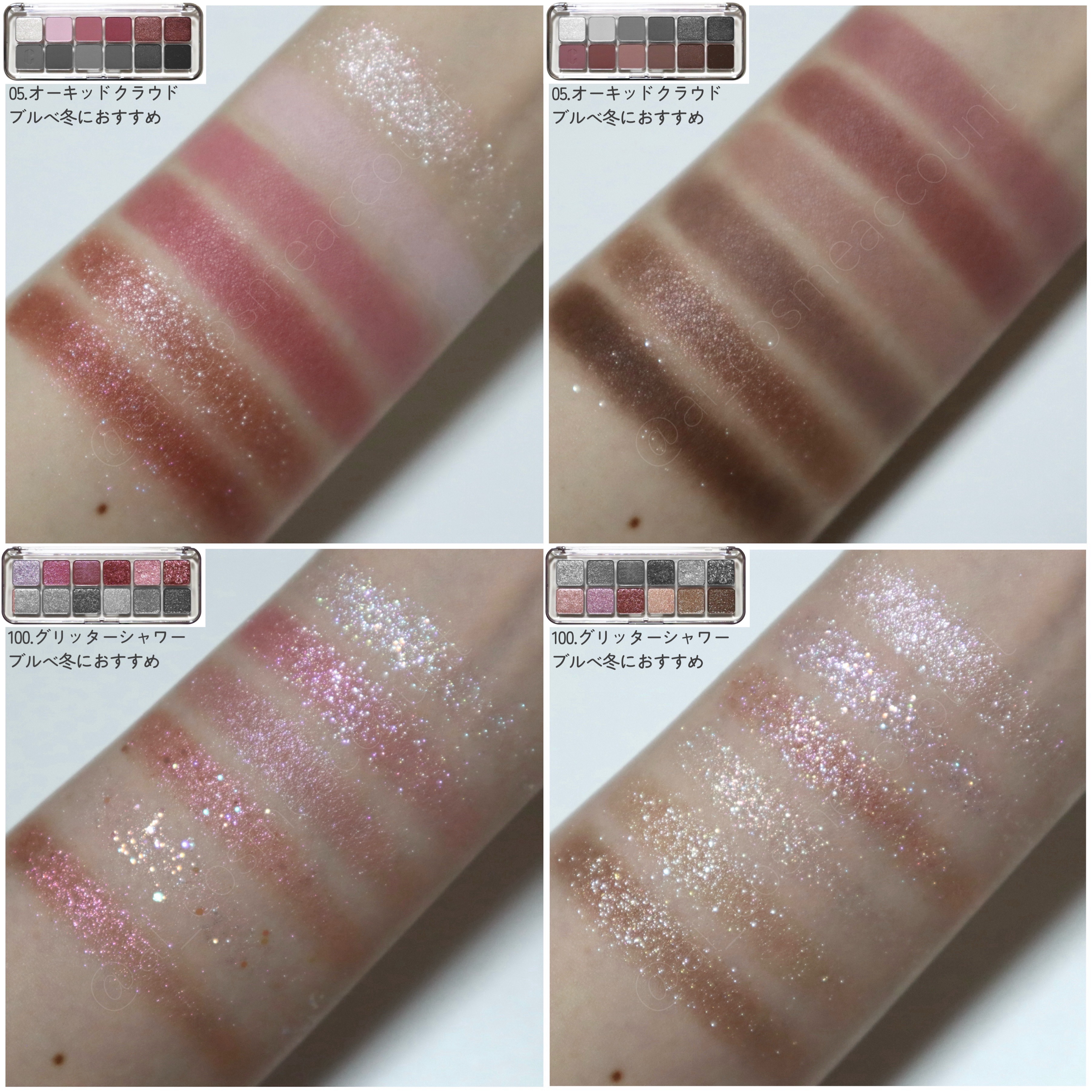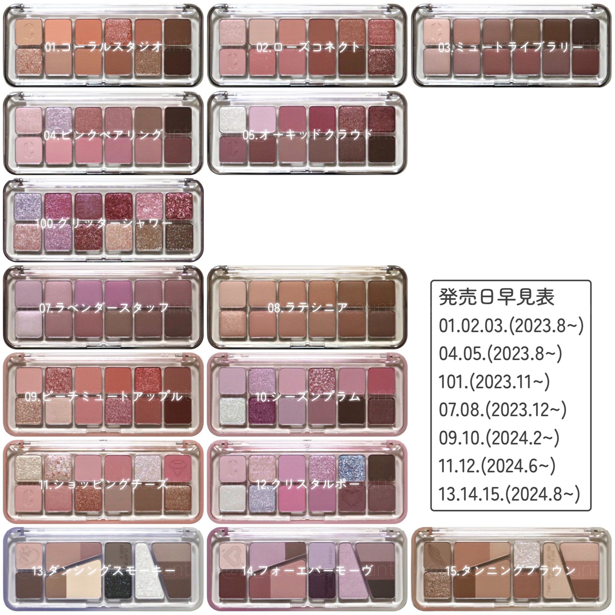[CLIOPROEYEPALETTE全色スウォッチ]CLIOプロアイパレットの1号〜10号と、StreyKidsコラボ限定色の100号・101号の全色スウォッチです。フラッシュ撮影の全色スウォッチはコチラ↓https://lipscosme....