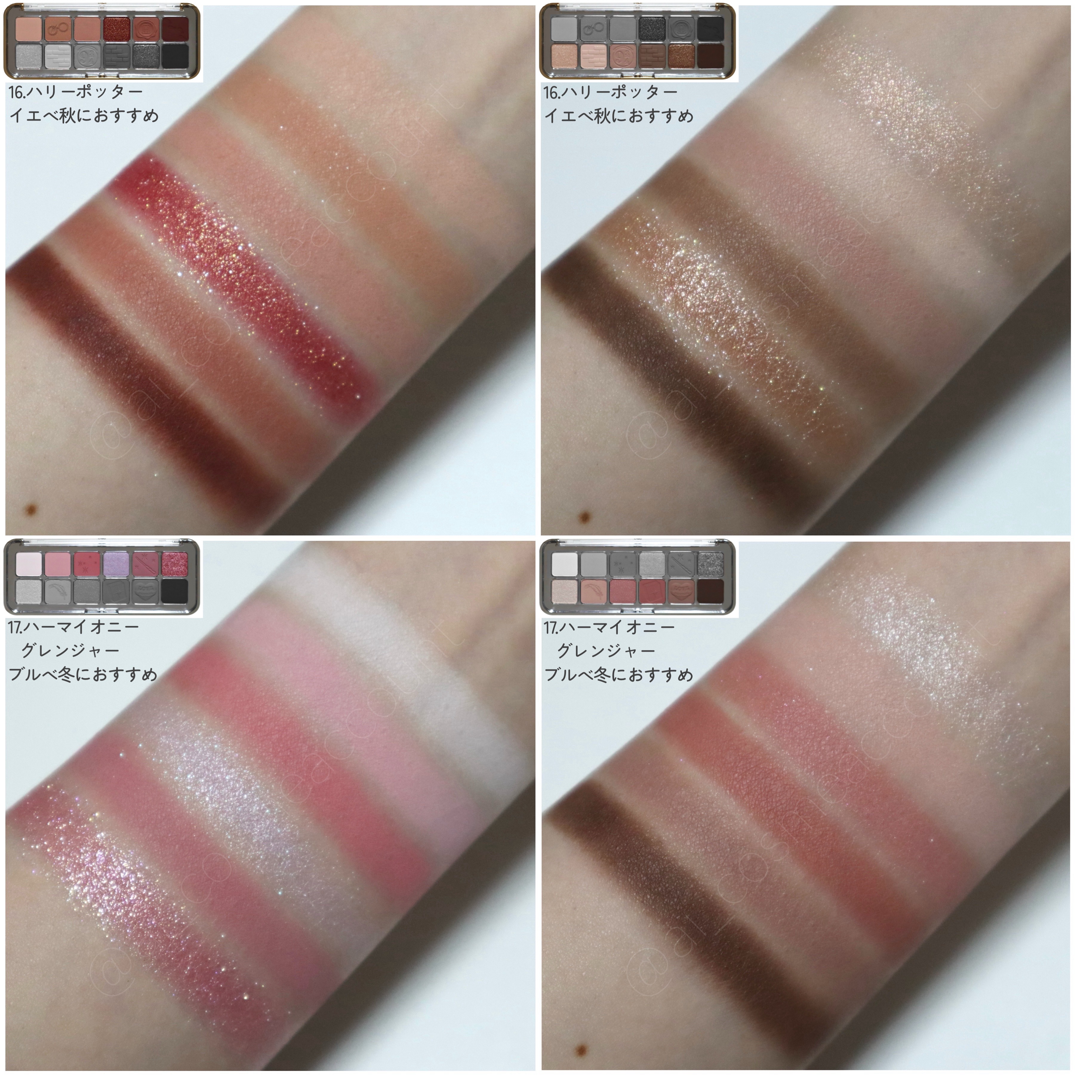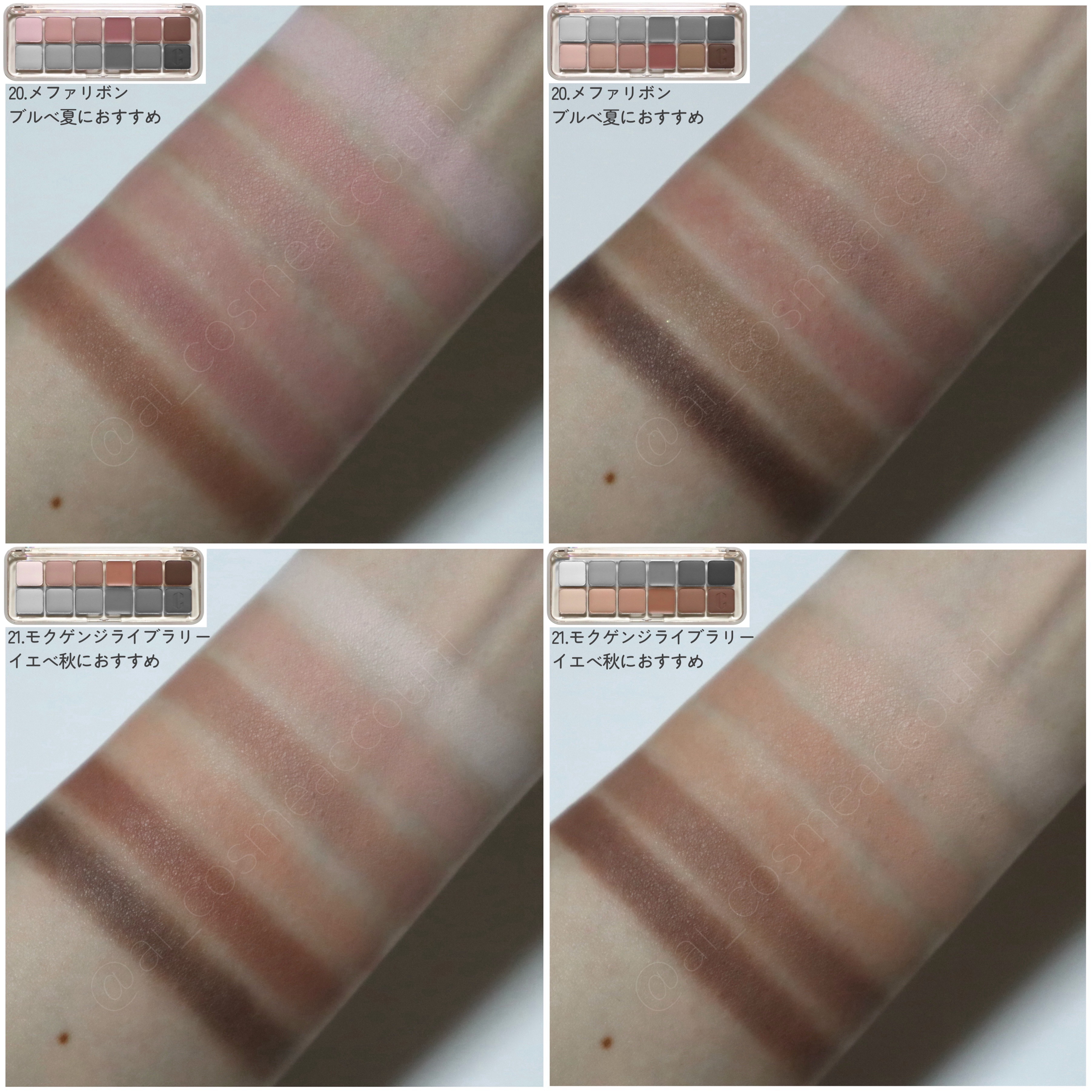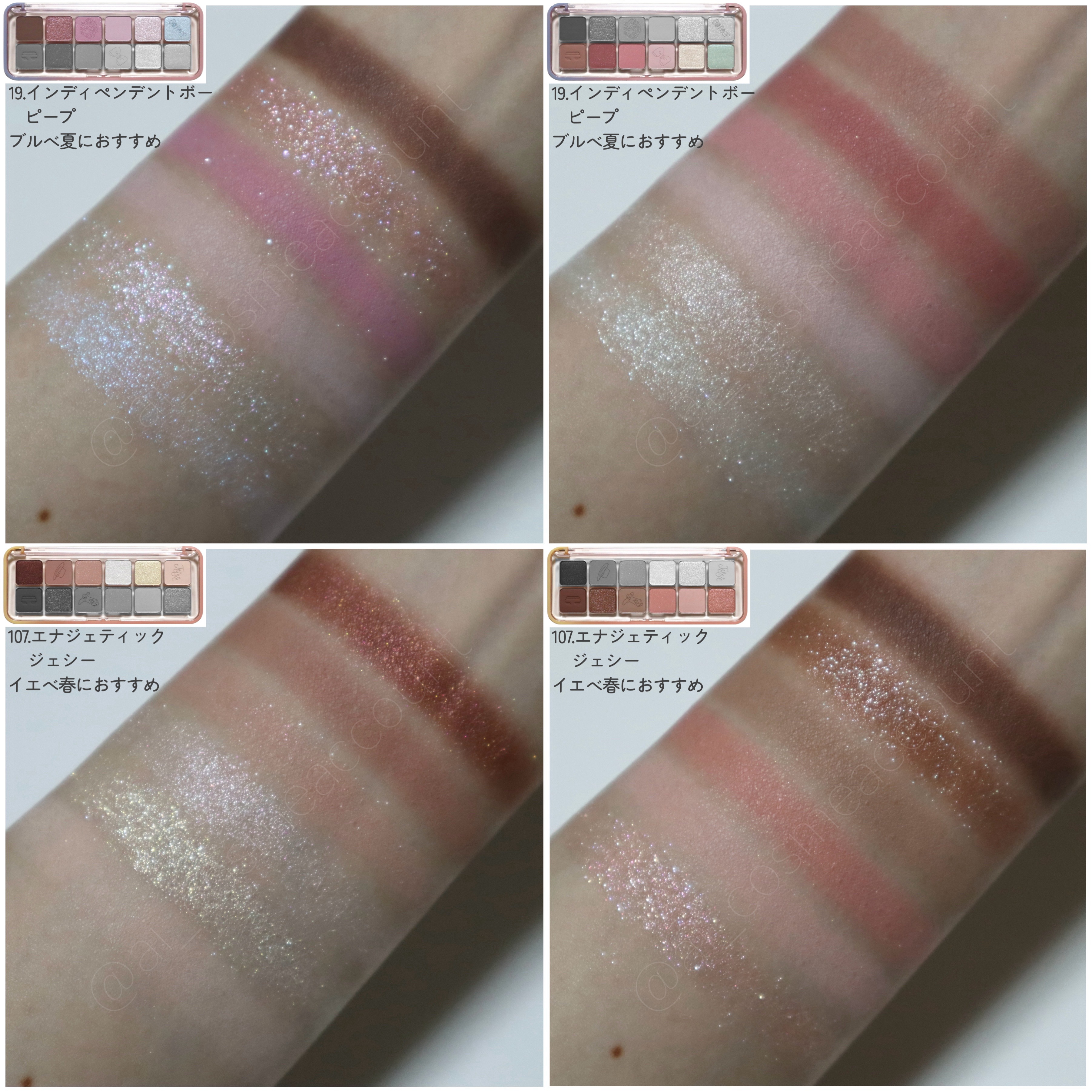 [CLIOPROEYEPALETTE全色スウォッチ]CLIOプロアイパレットの1号〜10号と、StreyKidsコラボ限定色の100号・101号の全色スウォッチです。フラッシュ撮影の全色スウォッチはコチラ↓https://lipscosme....