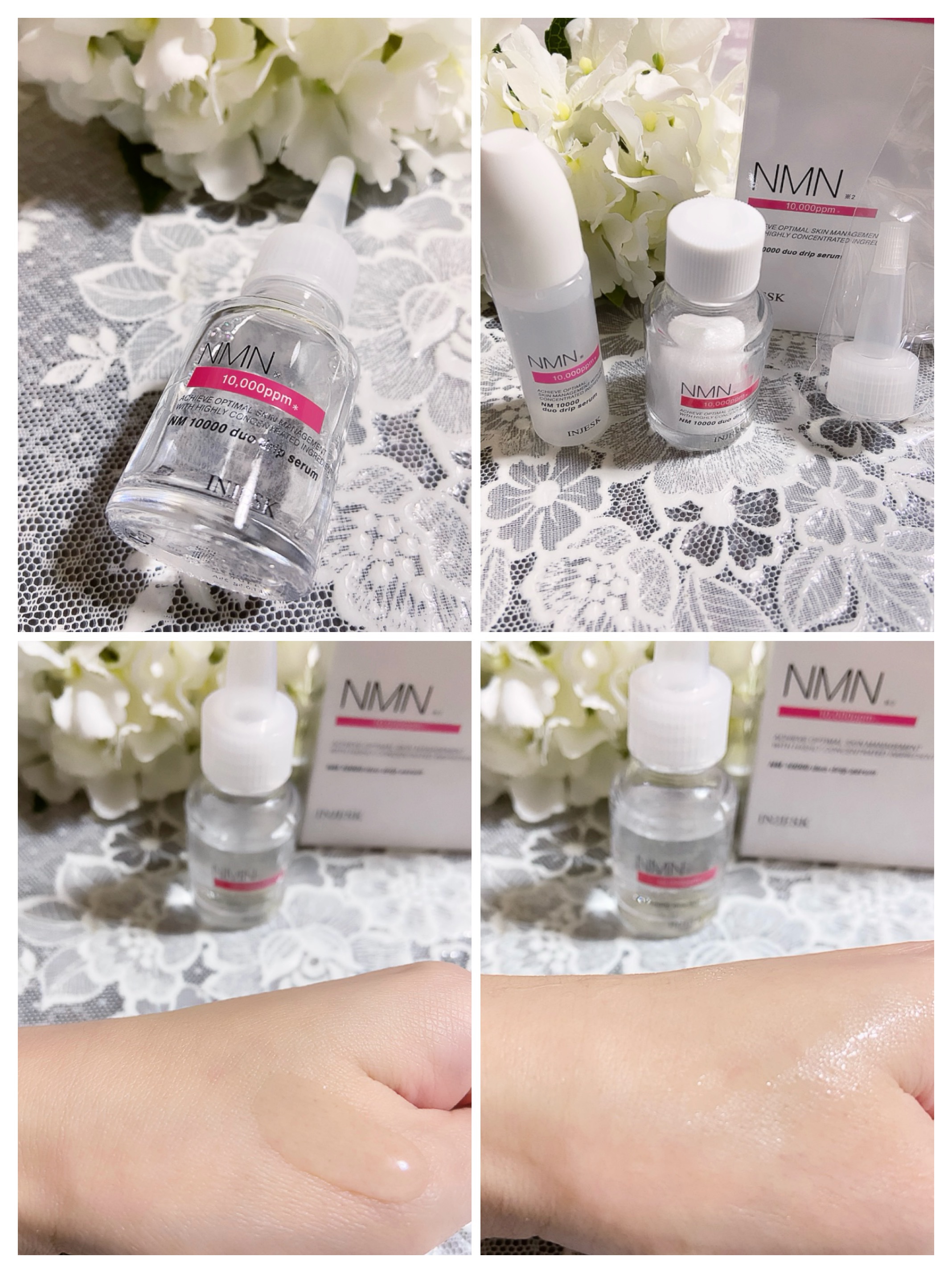 INJESKNM10000デュオドリップセラム♡美容皮膚科学発想で自宅で毎日“肌管理”話題のNMN*をエビデンスある濃度でしっかり届ける**セラム✨パウダーとリキッドを混ぜてから使うよ。ほんのりとろみのあるテクスチャー。肌なじみ良く、しっとり...