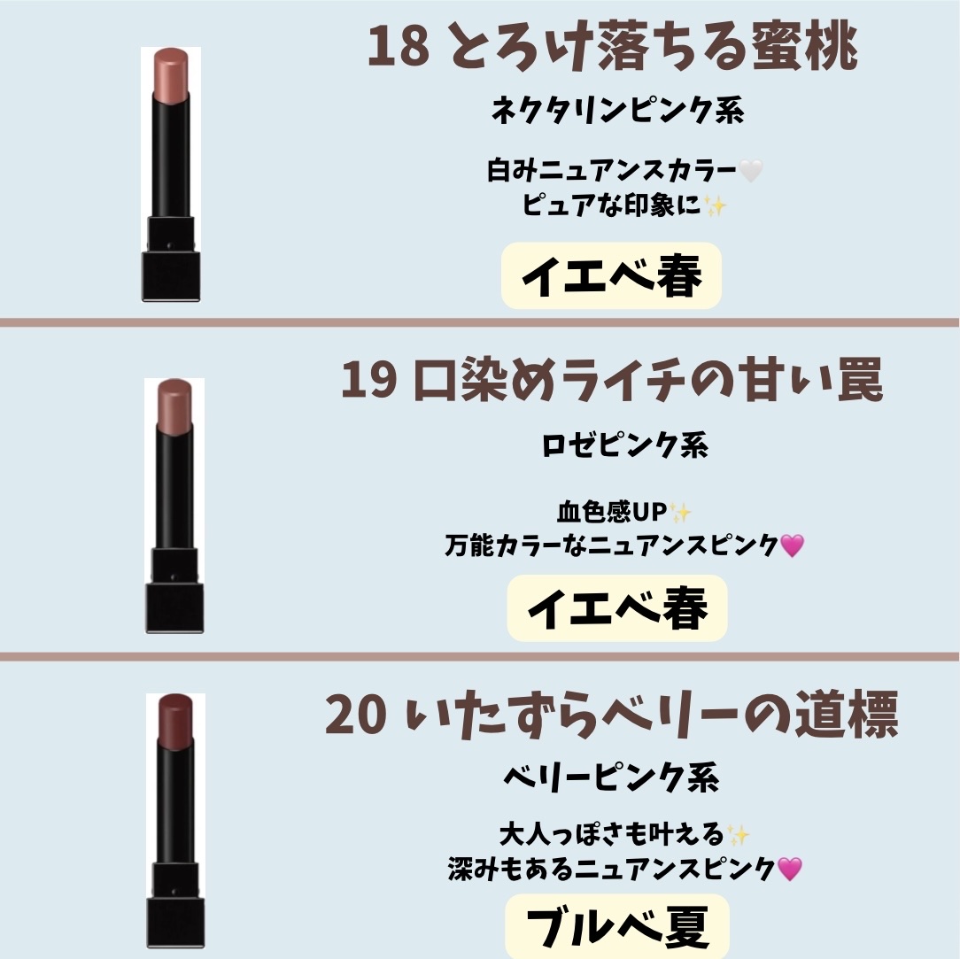 | 口紅・グロス・リップライナーランキング第7位 | 全色どこかまろやかさを感じる発色で デイリー使いしやすい粘膜の延長のようなカラー | 詳細を見る | |