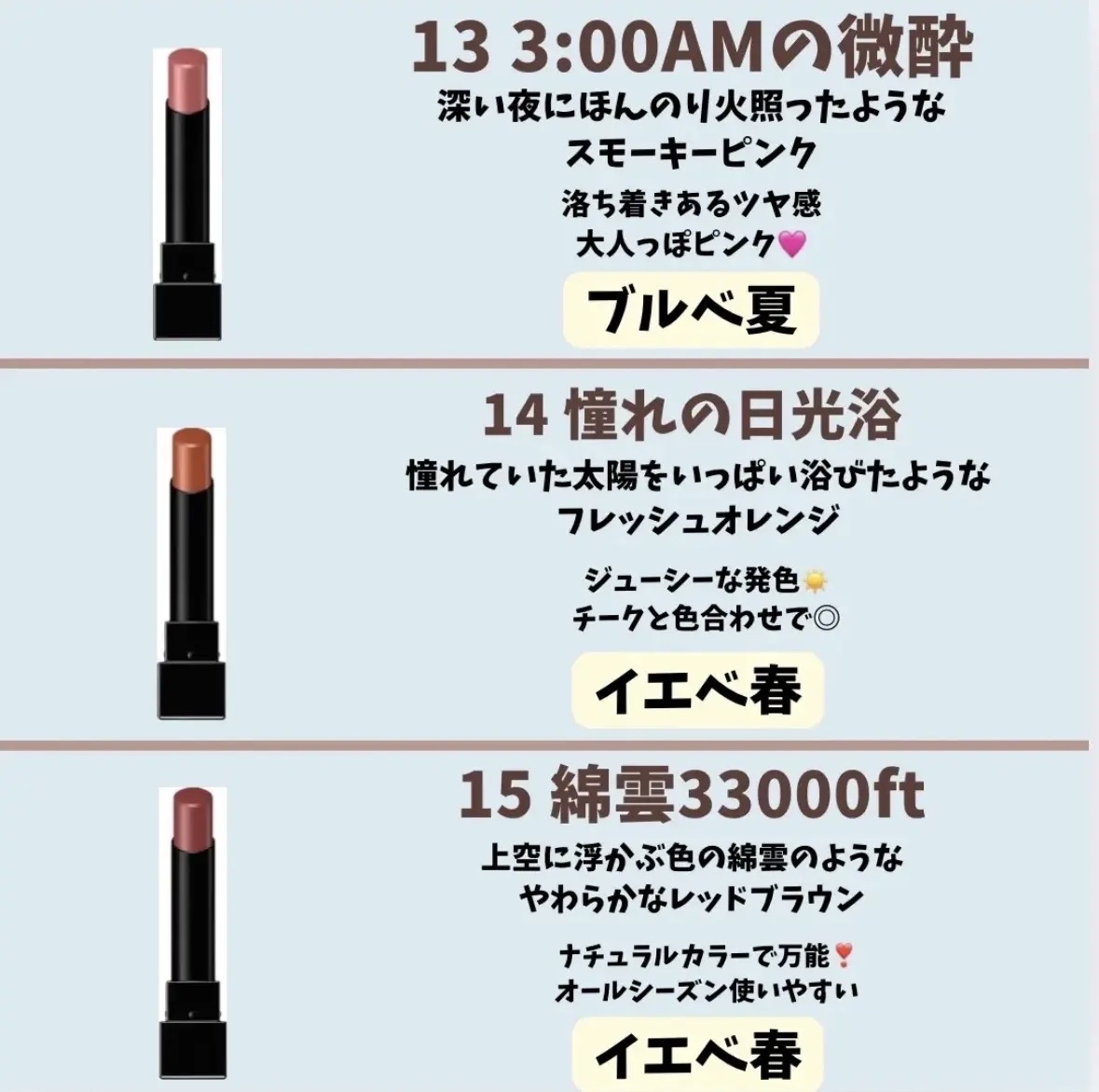 リップモンスター THE保存版💫💄2025年秋冬ver.リップモンスターから11/22日にホリデー限定カラーが発売されるよ🙌🎄既存カラーに2色仲間入りして全24色に❣️全24色カタログUPしていくよ🫶🏽🌺01欲望の塊映える王道レッド❤️🌺02...