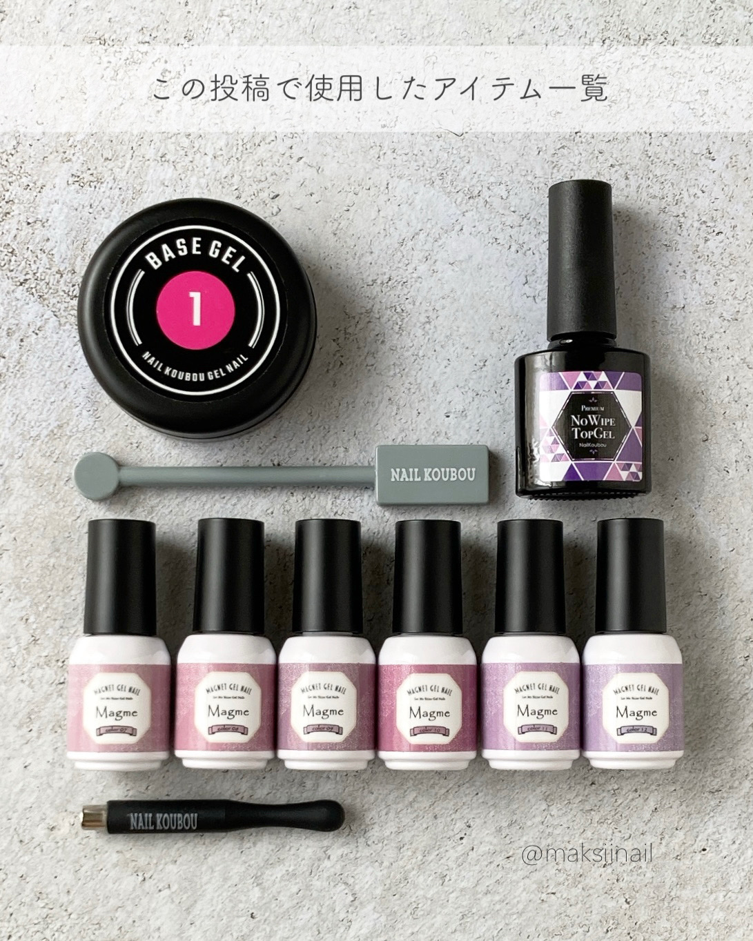 ...ネイル工房(インスタ@nailkoubou)認定アンバサダーのmaksiinailです☁️今回はネイル工房さんの新商品5ミクロンマグネット全14色のご紹介~使用したアイテム一覧~⚫︎allネイル工房┣5ミクロンマグネット全14色┣...