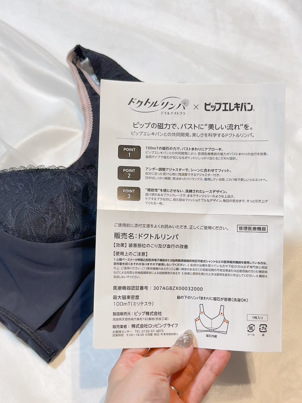 ドクトルリンパ デイ&ナイトをお試しさせていただきました。こちらはピップと共同開発された“磁気ケア×バスト補整”という新発想のデイ&ナイトブラです。肩と脇にかけて左右計6個の薄型マグネットを内蔵した管理医療機器の磁気ブラで今までにない新発想の...