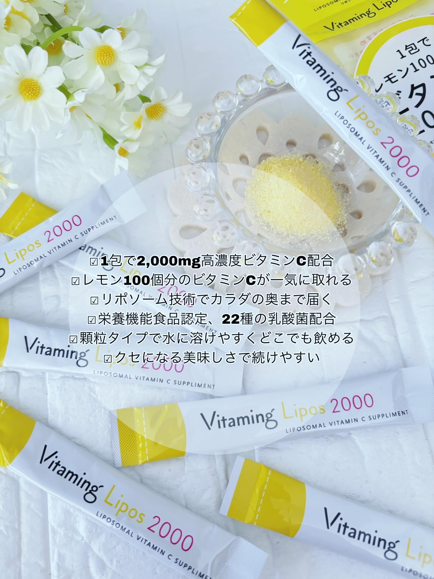 #PR@vitaming_official様からバイタミングリポス2000(リポソーマルビタミンCサプリ)をいただきました😻ありがとうございます!1包でレモン100個分*のビタミンC2000mg🍋(※レモン果実1個のビタミンCを20mgと換算...