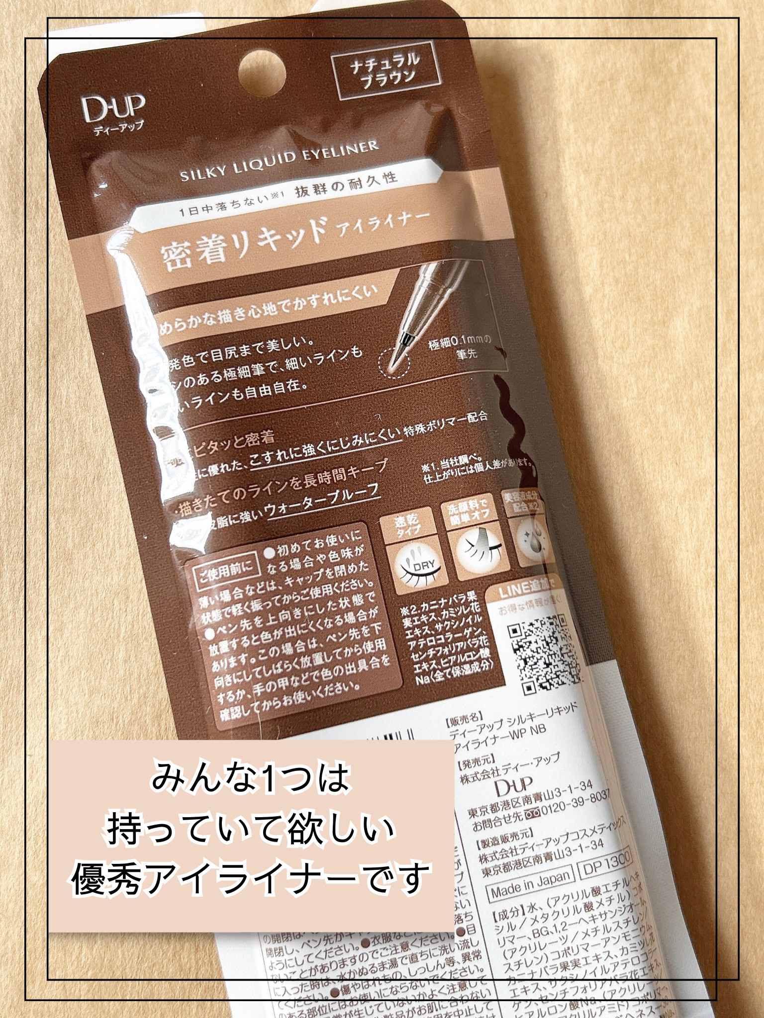 LIPSやアットコスメでも評価の高いアイライナー。ディーアップシルキーリキッドアイライナーカラー:ナチュラルブラウン☑︎描きやすい0.1mmの筆先でスルスルなめらかに描ける!☑︎水、汗、皮脂に強い。☑︎こすれに強く、にじみにくい。...