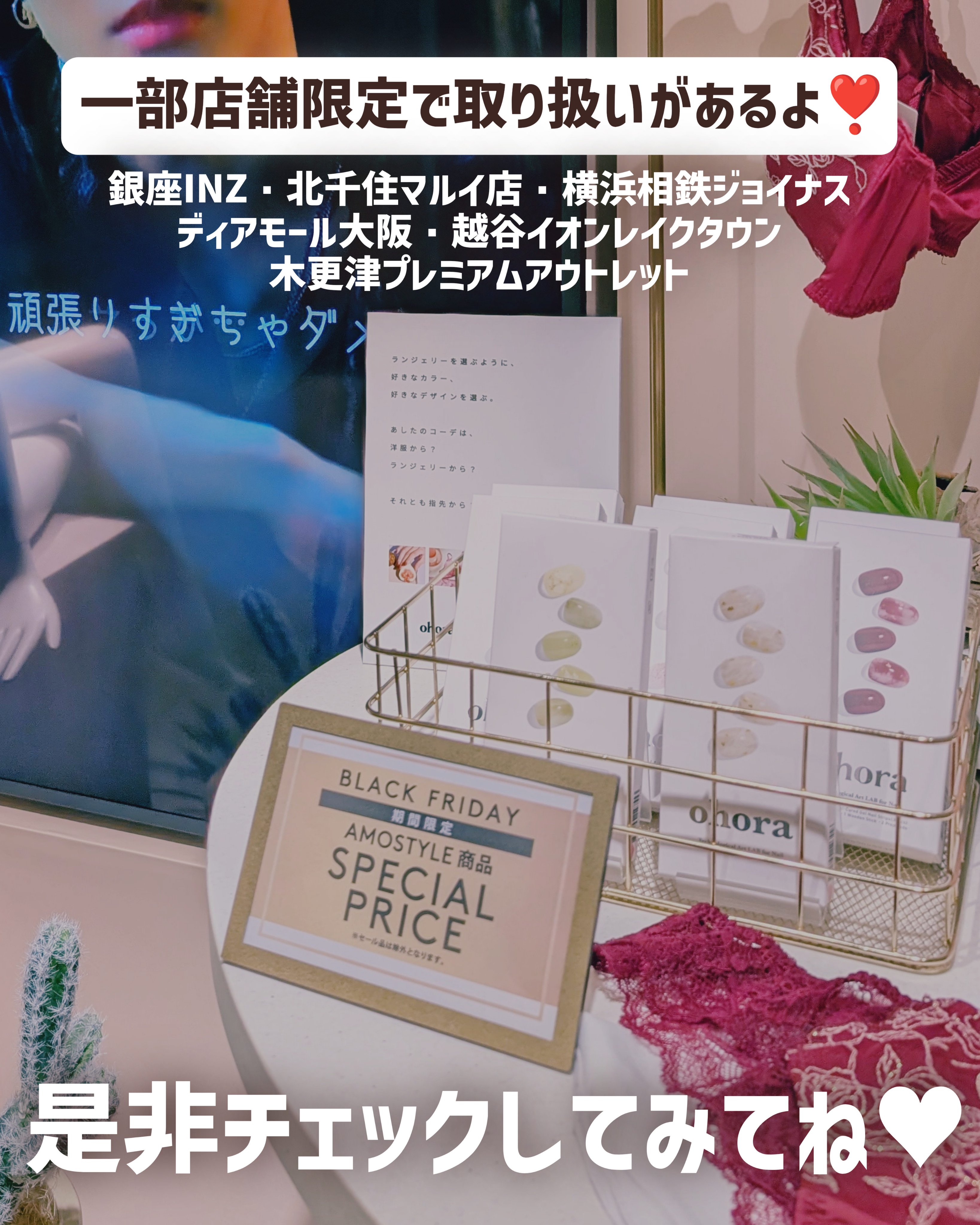 ネイルシールで有名なOhoraがAMOSTYLE(アモスタイル)でも買えるよ♥️インナーショップでネイルが買えるのはすごいよね✨AMOSTYLEがチョイスしたかわいいデザインがディスプレイされているの💗インナーと合わせてネイルを選ぶのも楽しい...