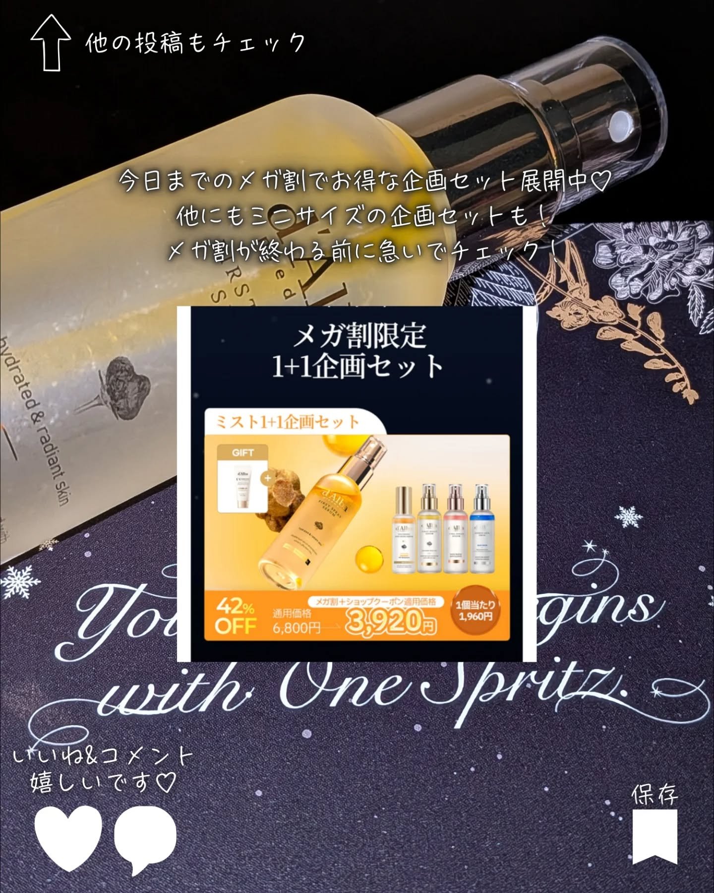 | スキンケアランキング第138位 | 超微粒子で空気のように軽いミスト🤍🤍🤍 つけた瞬間から優雅な香りが広がるよ! | 詳細を見る | |