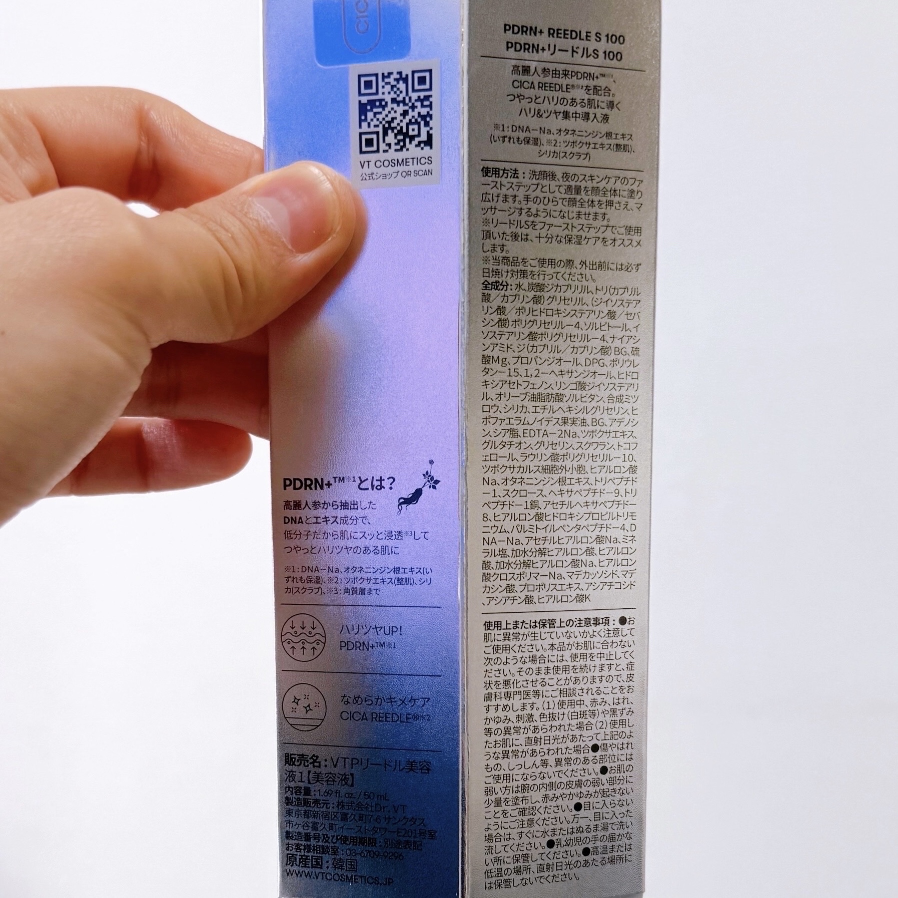 - VTの代表商品である、リードルSは独自成分CICA REEDLE®が含まれており、肌の角層まで浸透し、うるおいをあたえ、肌荒れを防ぎます。 そこに今回のPDRNリードルS100セラムには、韓国で人気で高価な成分であるPDRN*2配合! VTのPDRN*2は、サイズが小さい植物性低分子PDRN*2で、 徹底したエイジングケア*3のサポートにより、しっとりと輝くようなお肌に仕上げます。 オンライン:PDRNリードルショット100 オフライン:PDRN+リードルS100 *1ツボクサエキス(整肌)、シリカ(スクラブ) *2DNAーNa(保湿 *3年齢に応じたお手入れ ■このような方へおすすめ 時間と共に肌のハリで悩んでいる方 超濃縮PDRNで健やかな肌を保ちたい方 リードルショット×PDRNで集中的にハリツヤケアしたい方 健やかな肌を保ち乾燥による肌悩みケアまで行いたい方