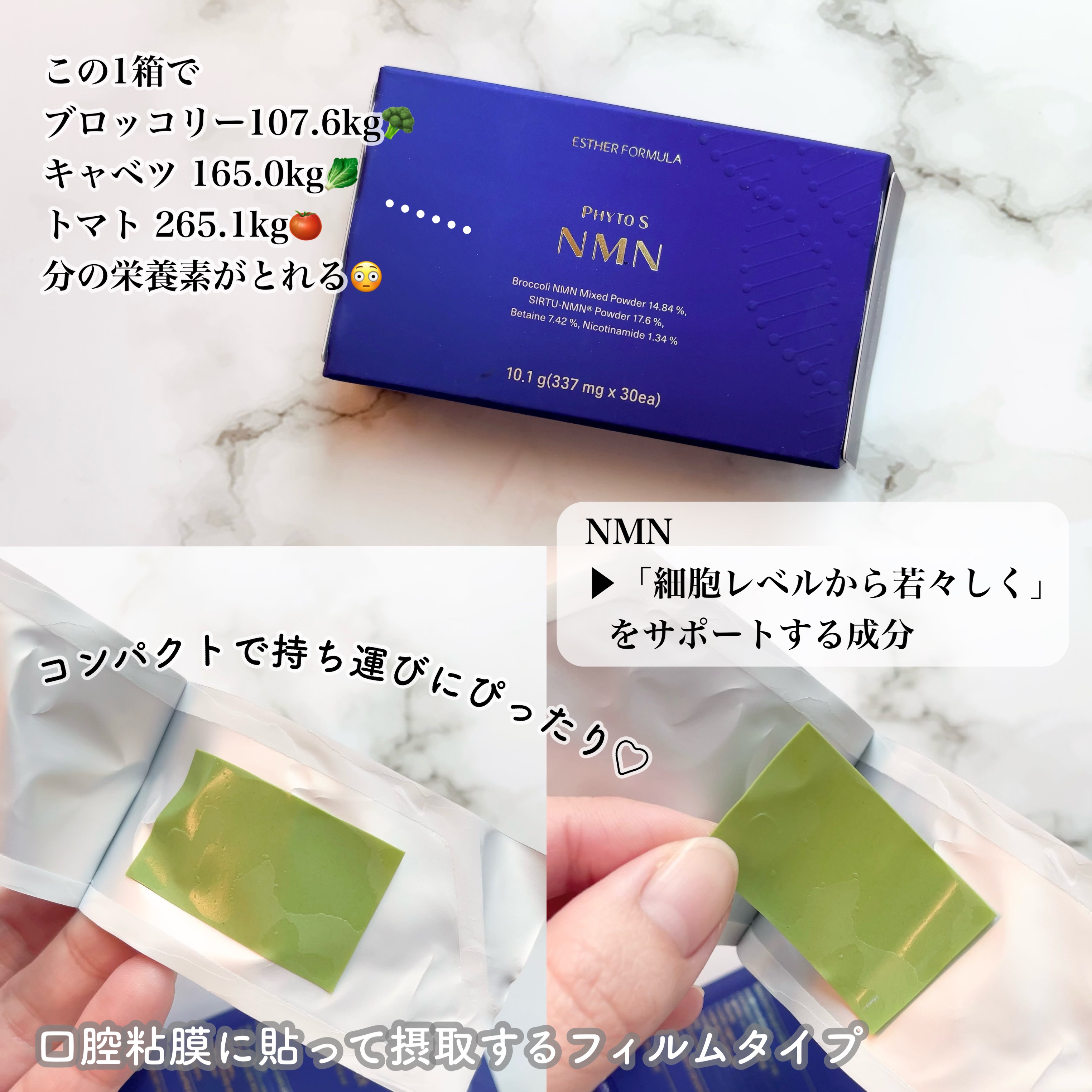 -ブランド:ESTHERFORMULA商品名:ヨエスター植物性NMNフィトエス2Xフィルム参考価格:¥4900(税込)\上顎に貼るだけで吸収されるフィルムサプリ/✅スローエイジングケアをサポートするNMN配合✅フィルムタイプで高吸収&高浸透を...
