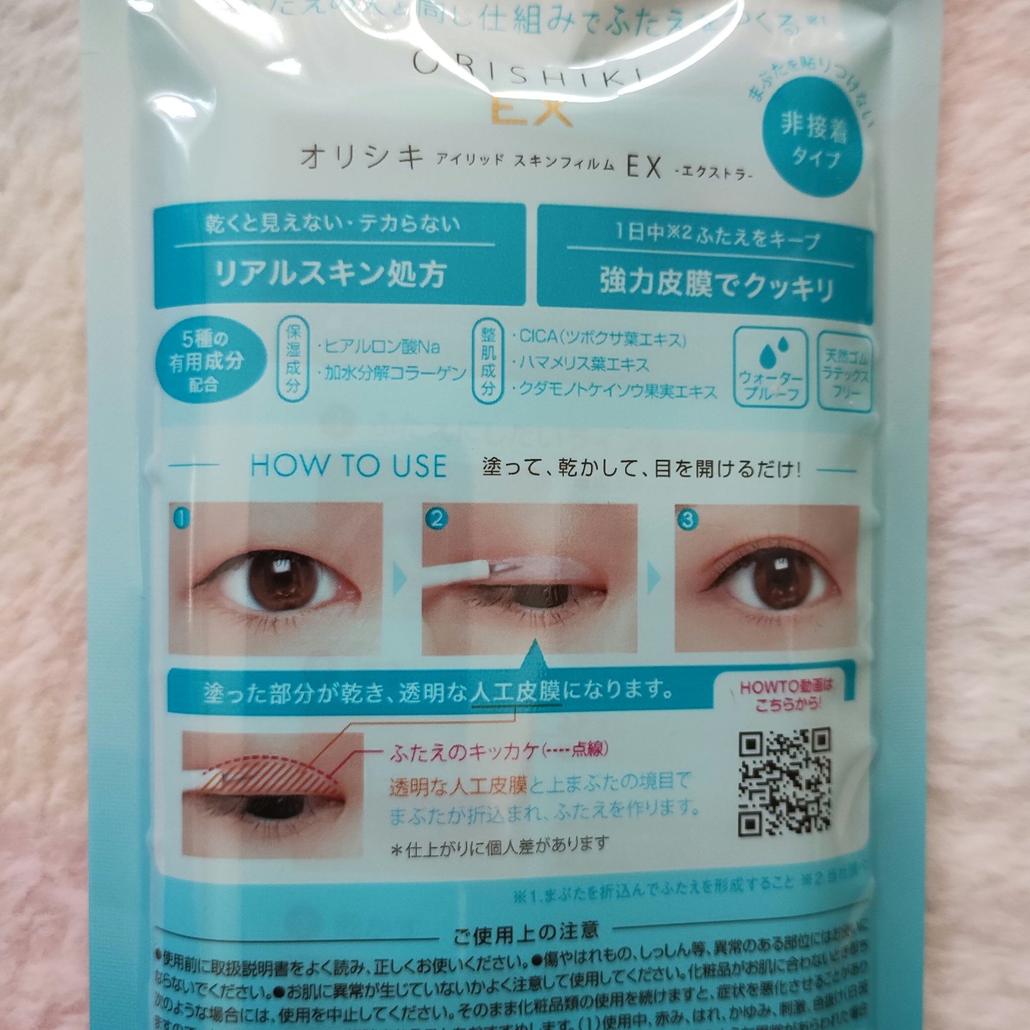 - 「オリシキ アイリッドスキンフィルム」(以下、「オリシキ」)は、塗って乾かすだけで透明な人工皮膜を形成し、まるで“生まれつき” のような自然なふたえをつくる、非接着タイプのふたえコスメです。 そんな「オリシキ」から、皮膜力と自然な仕上がりがパワーアップした新製品『オリシキ アイリッドスキンフィルムEX』が登場。 天然ゴムラテックスフリーの新処方は、塗った部分がわからないほど肌になじみ、1日中(※)クッキリとしたふたえをキープする強力な皮膜を実現。まぶたを貼り付けずに折り込んでふたえラインを形成するので、目を閉じても違和感がなく、本物のふたえと同じ仕組みでふたえを作ることができます。 (※)自社調べ