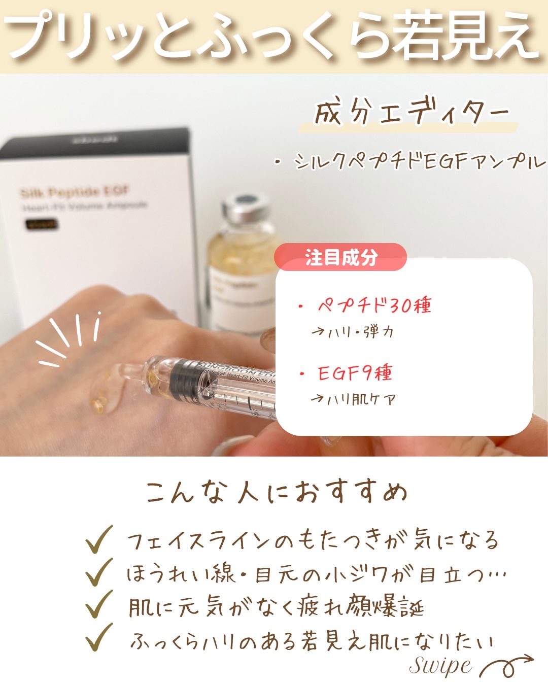 SUNGBOONEDITOR様より🍀@sungbooneditor_jpシルクペプチドインテンシブリフティングアンプルを提供して頂きました✨専用のアプリケーターでゴールド糸の入ったアンプルが使える贅沢なアンプル💛⭐ポイント⭐🔹高濃度*¹シルク...