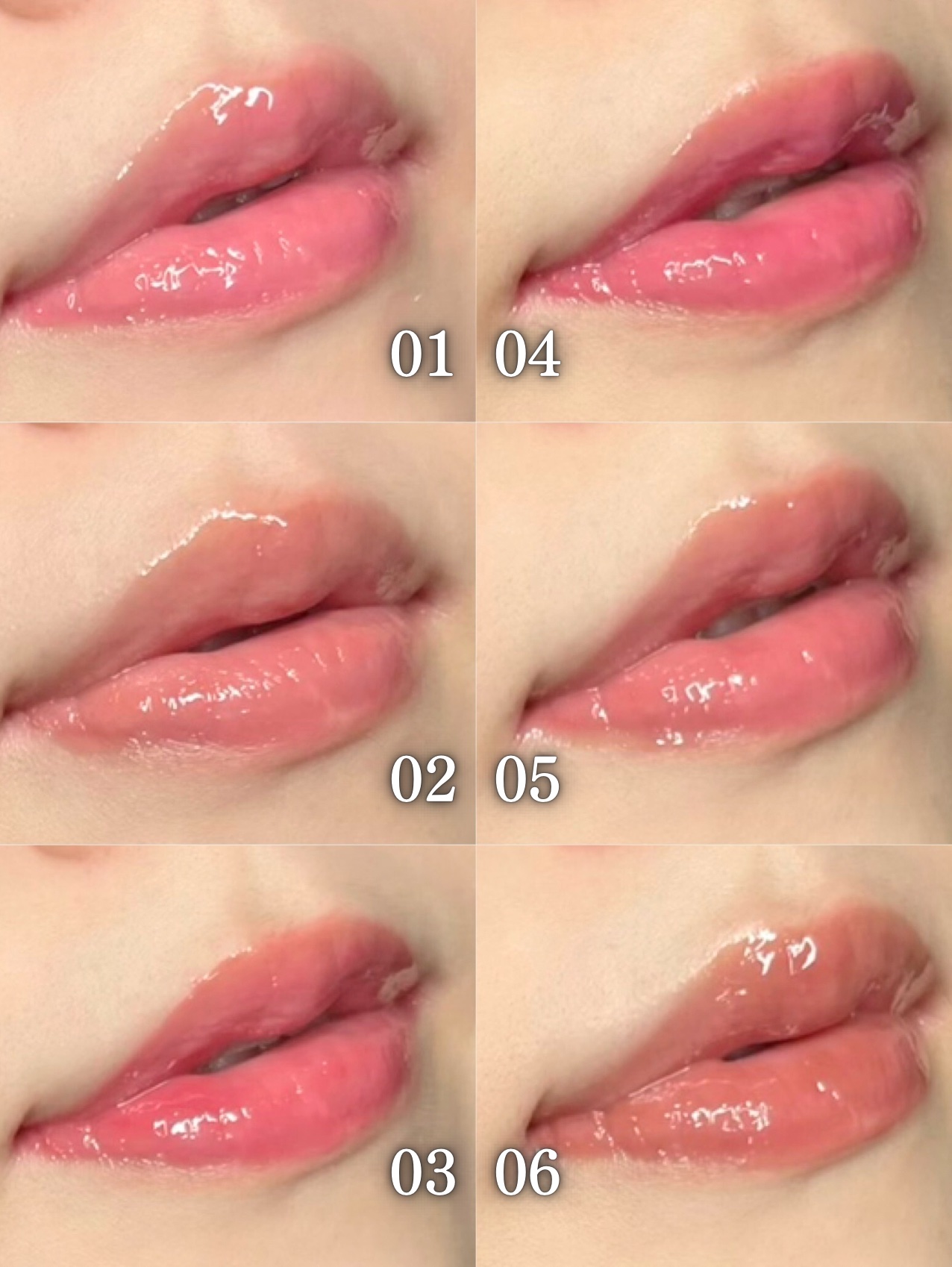 プランパーみたいなピリピリ感なく唇がちゅるっとツヤっとシワなく見えるようになるし、本当にツヤが綺麗✨ 全6色で、イエベ、ブルベに似合う色がバランスよく展開。 バズり中のうさぎ舌概念は01🐰 バレエコア好きさんは02, 05をチェック🩰 個人的には04がツボ!