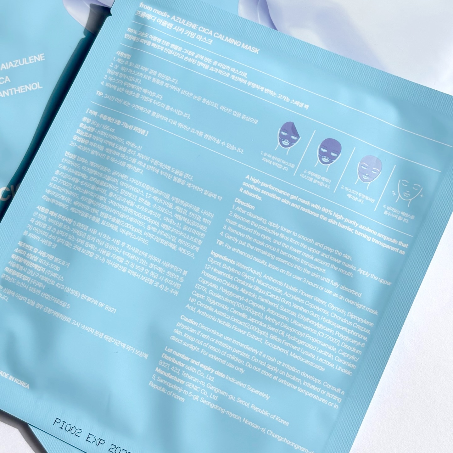 💧frommedi+アズレンシカカーミングマスク💧トラブル・ほてり・刺激をたった1日でスピード鎮静🌿グアイアズレン99%・ツボクサエキス・パンテノール配合でパックが透明になる瞬間肌の深く奥10層まで浸透ケア〜こんな方におすすめ〜☑︎クーリング...