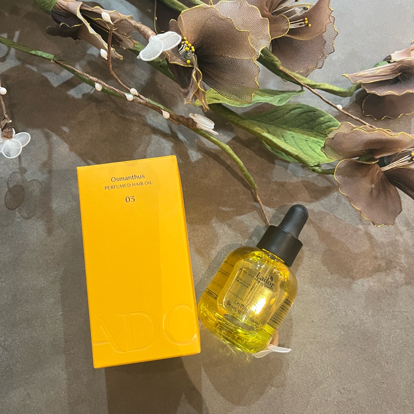 LADORパフュームヘアオイルオスマンサスの香りまるで髪に塗る香水と話題のヘアオイルヘアスタイリング前の熱ダメージをしっかりブロッてくれるそう※パフュームヘアオイル4種200℃の熱保護機能に関する人体適用試験済みドライヤーやヘアアイロンなどの...