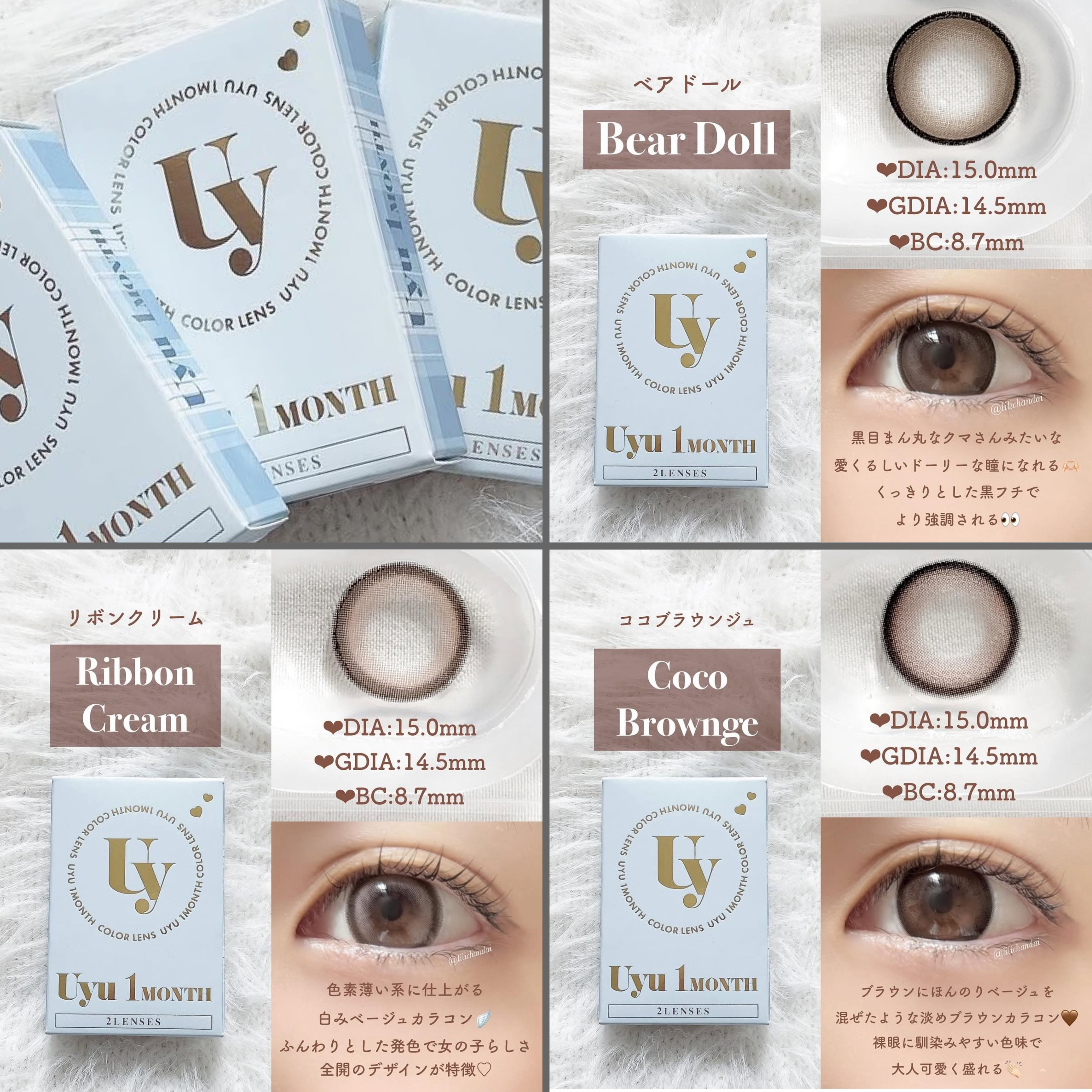 momohoちゃんプロデュースカラーあり♡ malun malun 新色をレビュー🎀 ダブルハイライトデザインの水光カラコン。透明感のある甘めグレージュできゅるんとビー玉のような仕上がり♡ どちらも“かわいい”がたくさん詰まっていてつけるだけでテンション上がるし、可愛くなった気分になれちゃう...♡