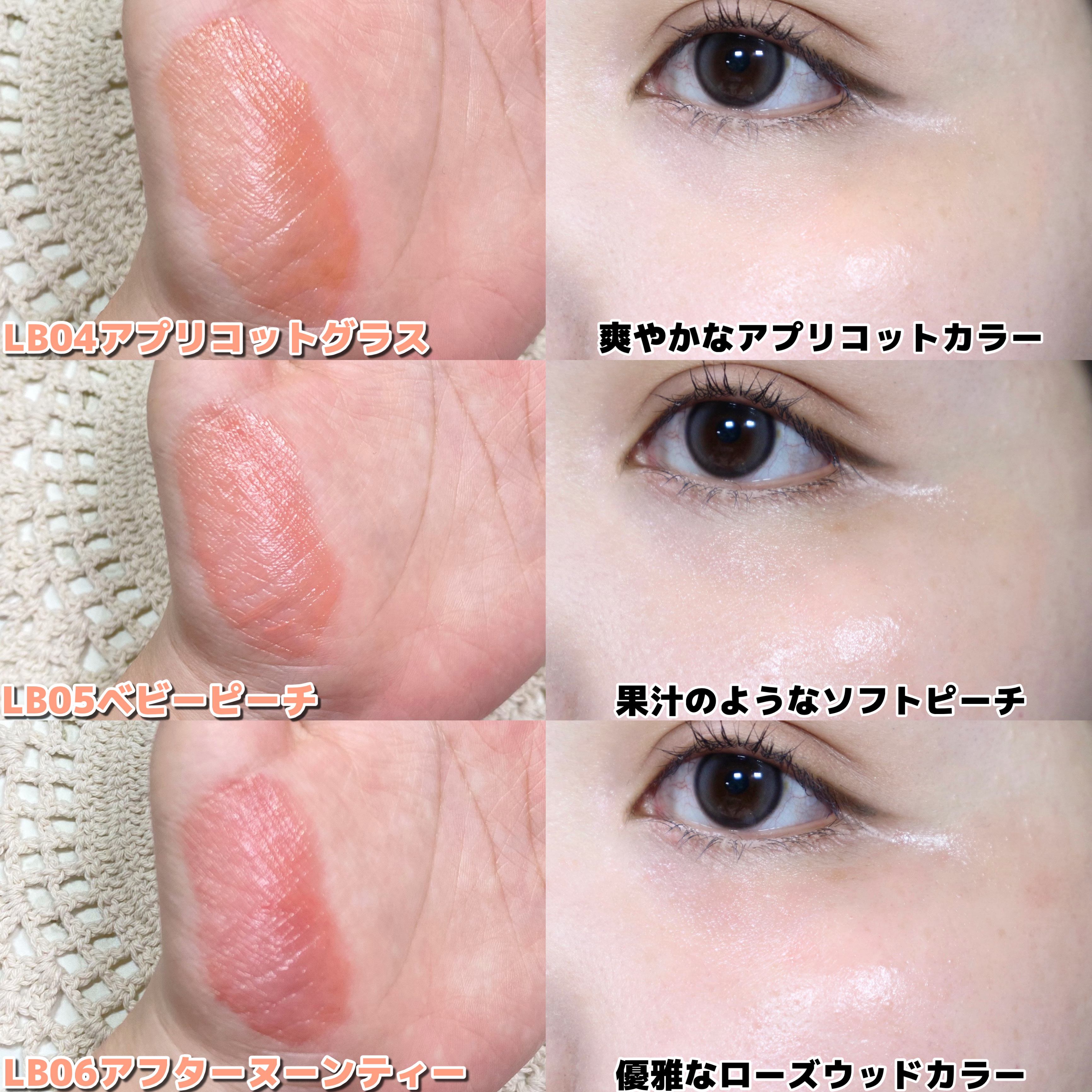 #hadahaフルールリキッドチーク¥1,780#ブルベ向けLB01VEILPINKLB02 ICEFLOWERLB03 MAUVEGARDEN#イエベ向けLB04 APRICOTGLASSLB05 BABYPEACHLB06 AFTERNO...