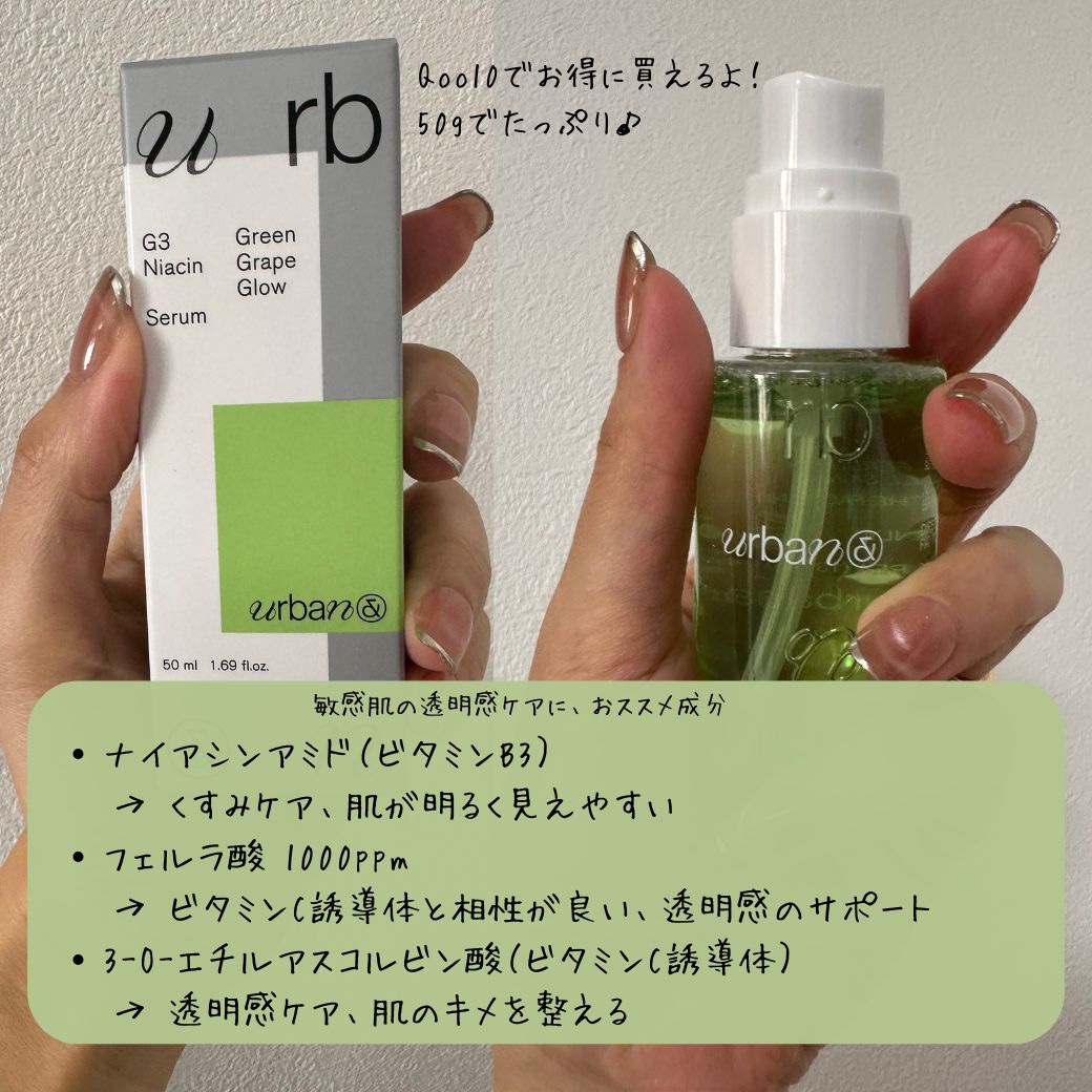 【ナイアシンアミド配合美容液で透明感のある肌に🍇】今回はアーバンアンド(@UrbanN_official)様からご提供いただきました☺︎🍇urbanandG3ナイアシンセラム🍇レビューナイアシンアミドを100,000ppmも配合した美容液...