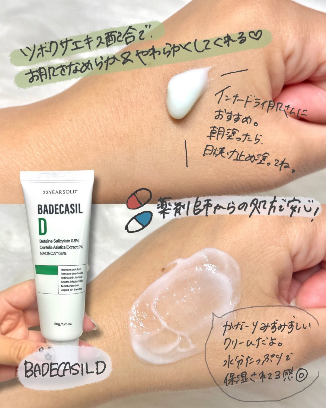 23yearsoldバデカシルシリーズ薬局でも話題の角質&肌トラブルケアアイテム💊韓国Optima薬局の薬剤師が処方した、敏感肌でも使える安心スキンケア2つに特徴があって使い分けることによって目指したい肌に近づける全顔使いのD/Pと集中ケアの...
