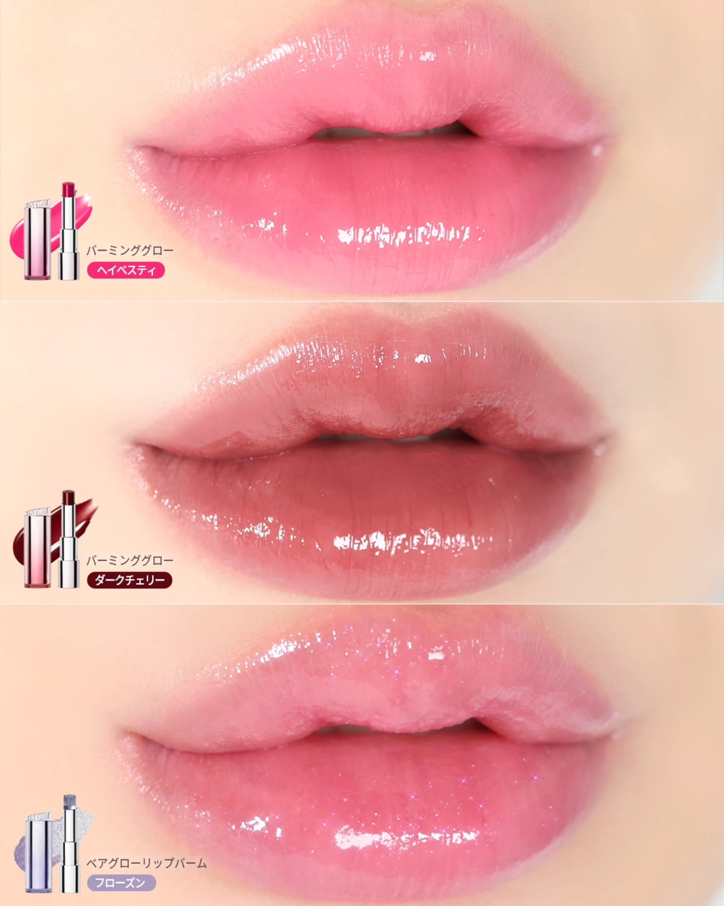 【WINTER×𝐏𝐞𝐚𝐜𝐡𝐄𝐝𝐢𝐭𝐢𝐨𝐧🍑】軽い塗り心地🫧ぷるんとしたツヤ✨が魅力のノーウェアリップスティックバーミンググロー💄そんなバーミンググローの甘くて柔らかい桃からバラ色のクールピーチまで“桃のかけら”を集めたカラースペクトル🍑✨𝗡𝗘...