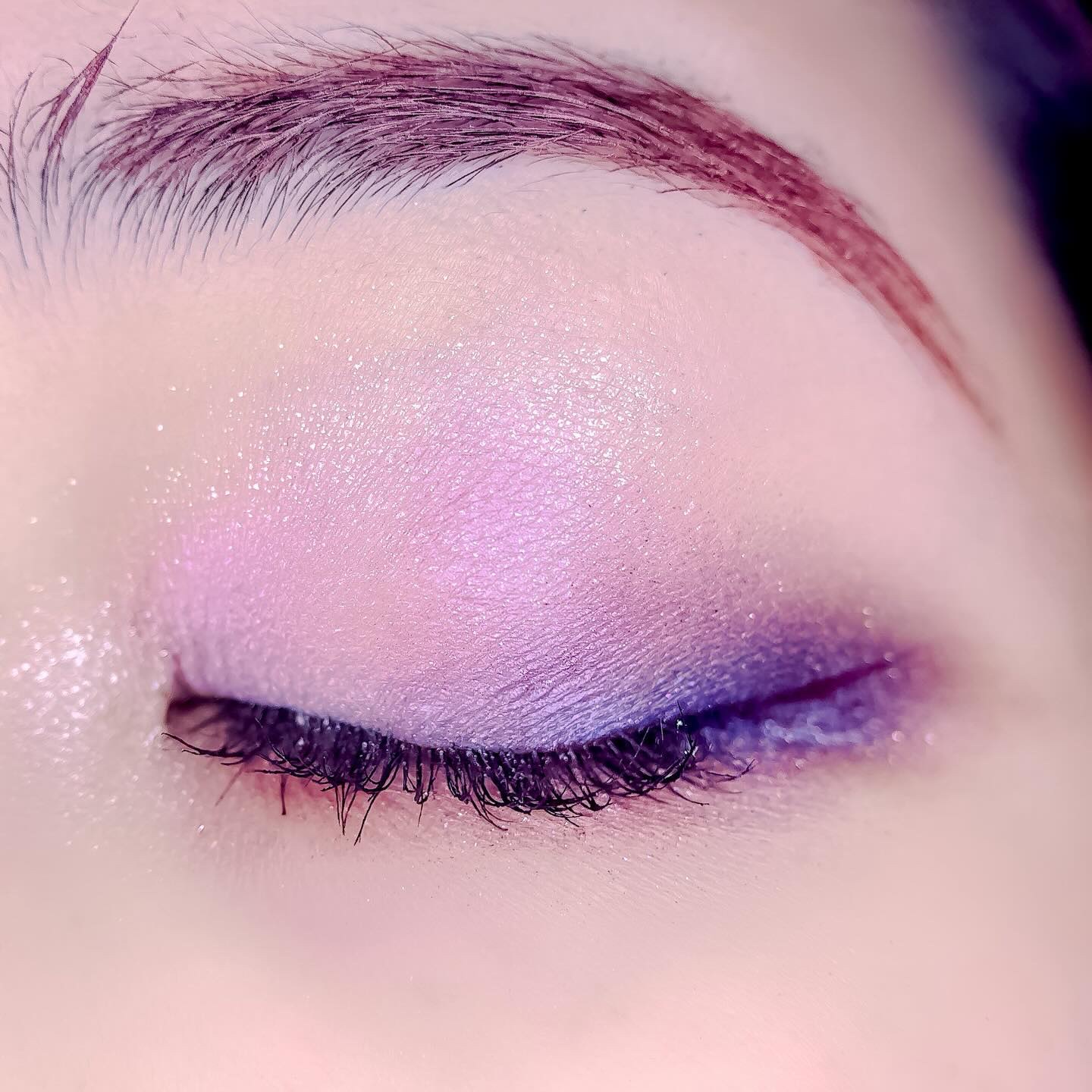 ベースに右上、目頭から黒目上に真ん中、黒目〜目尻に右下を、左上を目頭にくの字に塗ってもらいました✨ ピンクサクラよりもクールな感じで、目で見た色より私の肌では紫っぽく発色しました😍 上2つはラメはぎっしりでときめく💓 ブラウンメイクがとても苦手だけれどこれならブラウンメイク出来そう👌(かなり紫寄りですが) くすみ感は強いので苦手な方は厳しいかも…(特に真ん中) クールな印象になるので大人顔さん向けor大人顔になりたい方向けのイメージです✨
