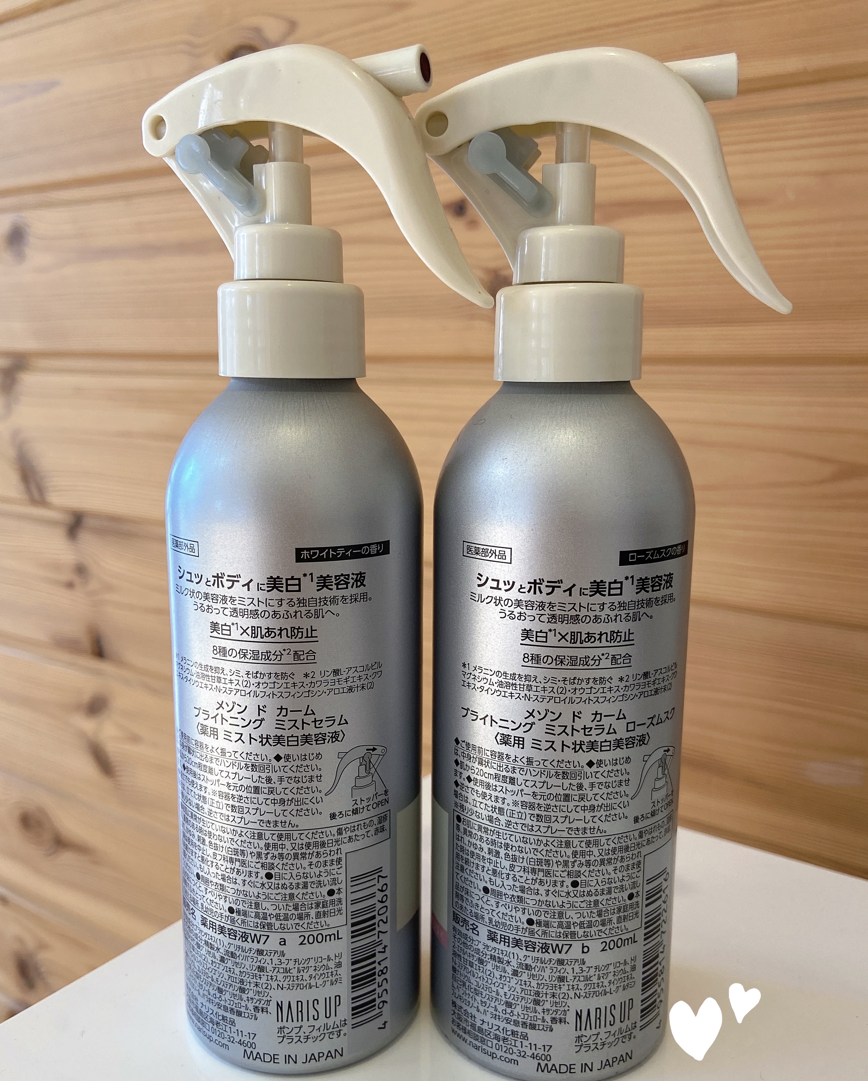 🌿✨ナリスアップメゾンドカームブライトニングミストセラム〈ローズムスク〉片手でシュッとできる、ミストタイプのボディ用美白美容液。ホワイトティーの爽やかな香りにローズ&ムスクが重なって、使うたび癒される🌹💐✔️美白有効成分「プラセンタエキス」配...