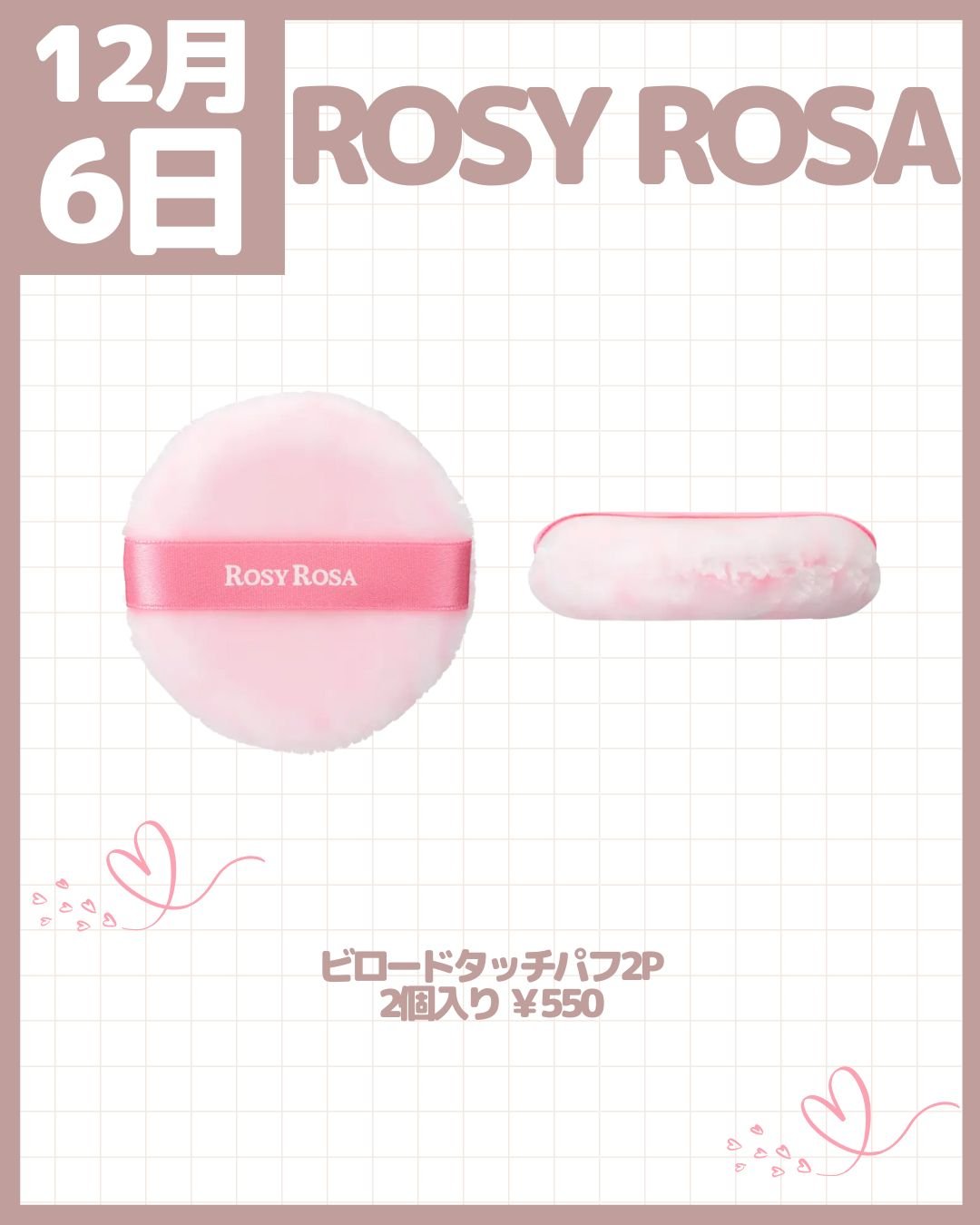 ロージーローザ ビロードタッチパフ 2P | 550円 |