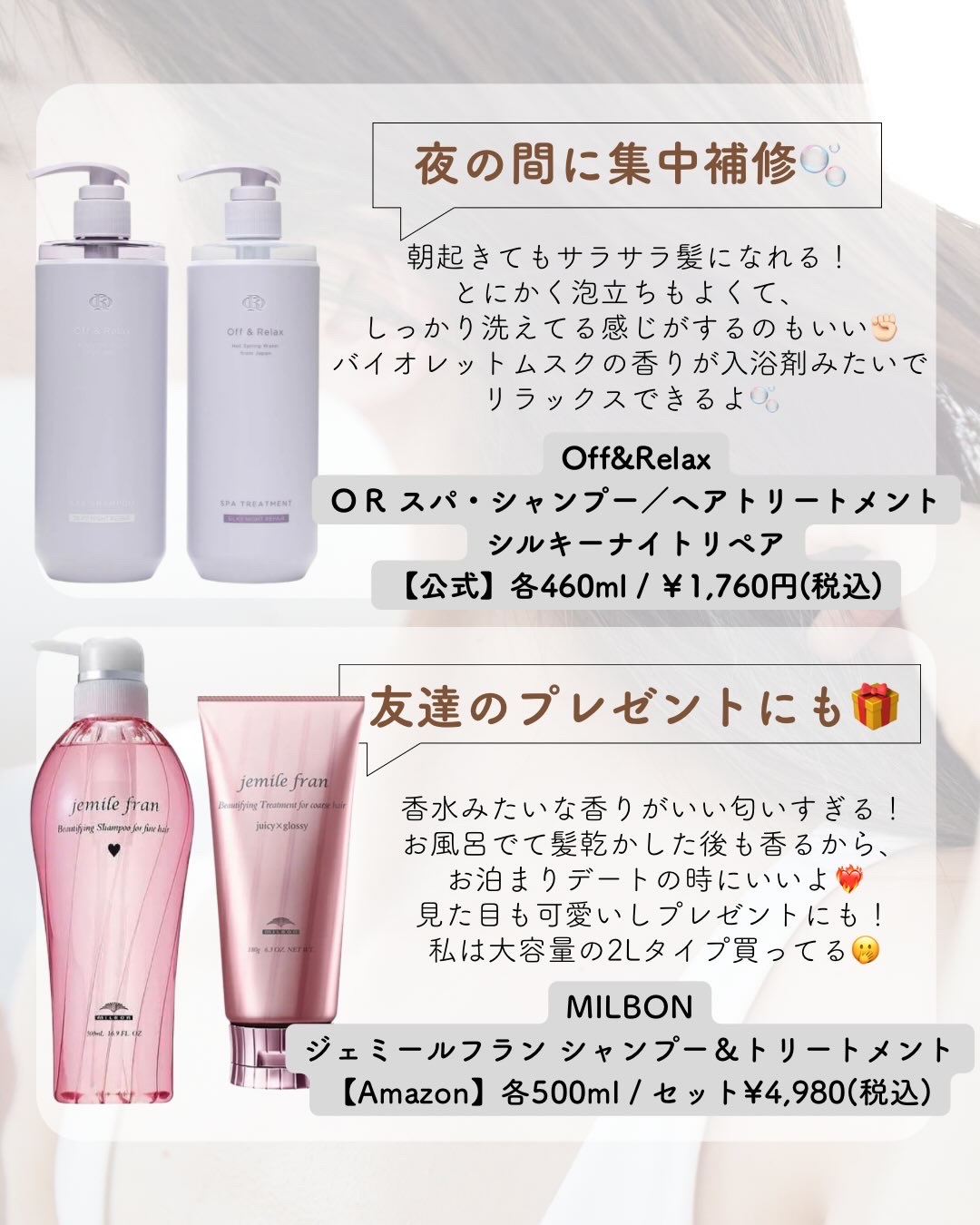 おすすめアイテムOff&Relax×市販シャンプー