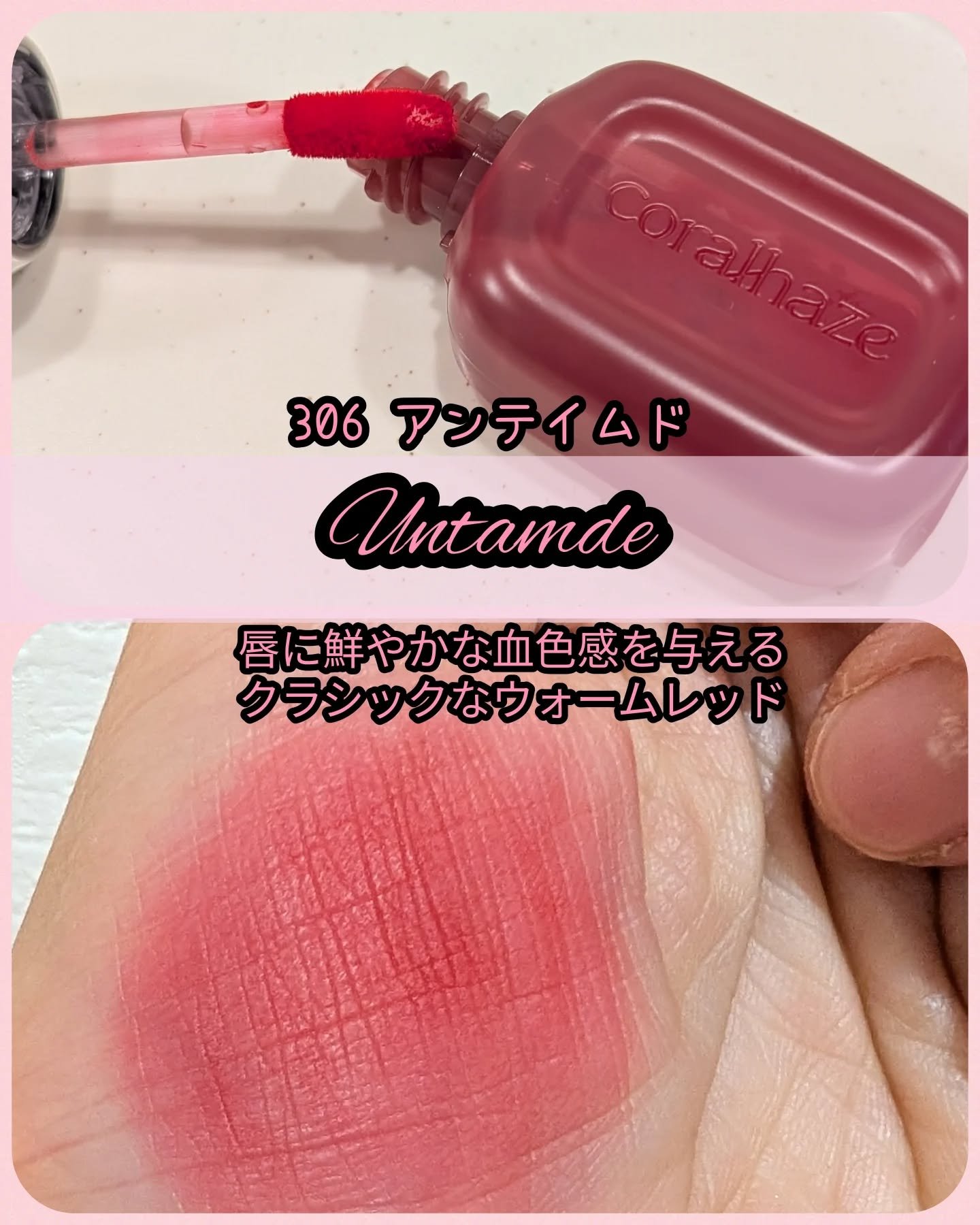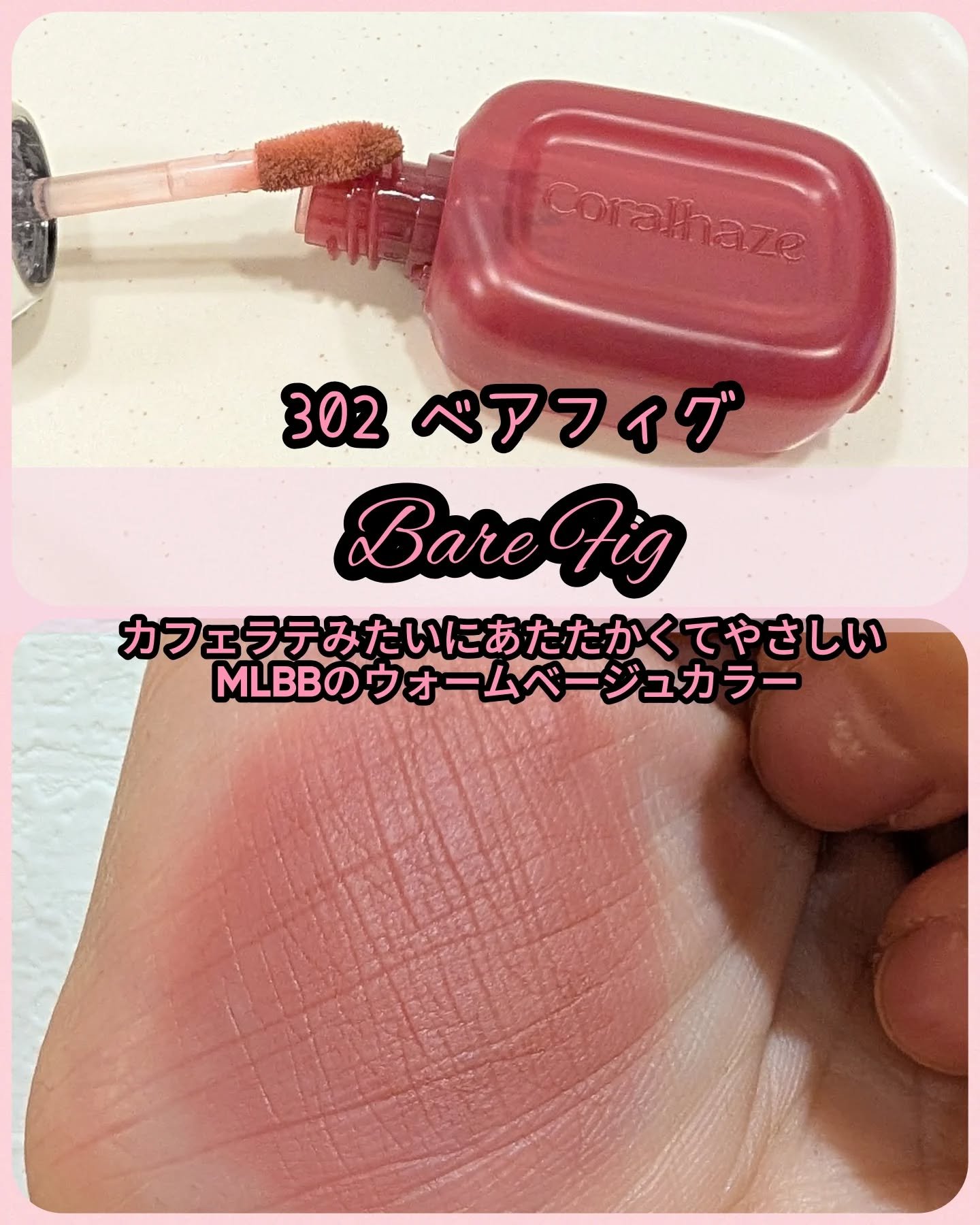 Coralhazeベアベルベットティント@coralhaze_jpマットリップの印象をやさしく更新する「コーラルヘイズ」の新作!大人っぽい可愛さのあるパッケージ、全6色の中から、💋301ミスティペタル💋302ベアフィグ💋306アンテイムドの3...
