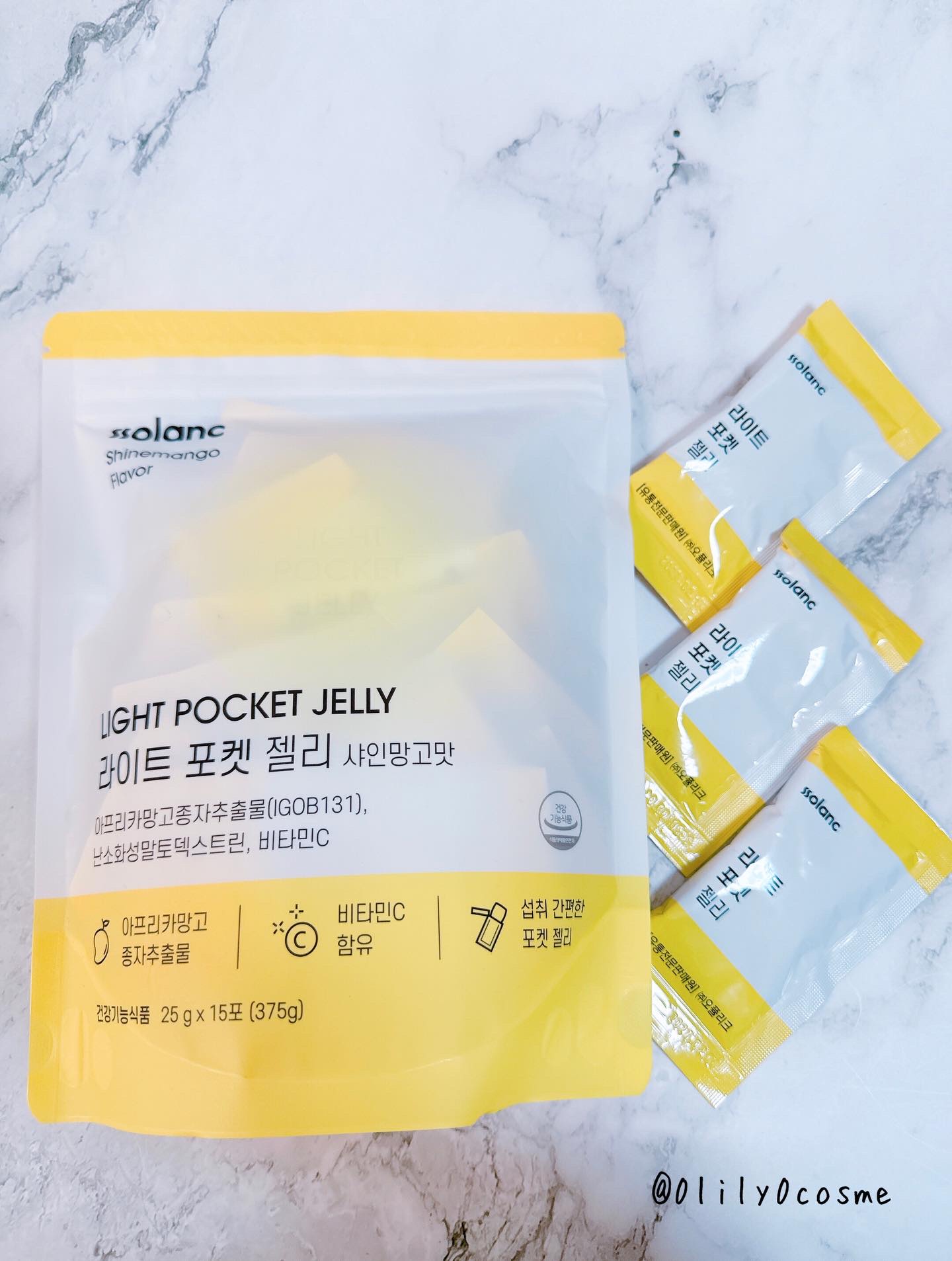ssolancソルランライトポケットゼリーシャインマンゴー味韓国発のダイエットサポートを目的とした健康機能食品。持ち運びに便利な個包装のゼリータイプ。ナタデココ入りでぷるぷる&もちっとした食感。マンゴーの甘い香りが美味しく手軽にインナーケアが...