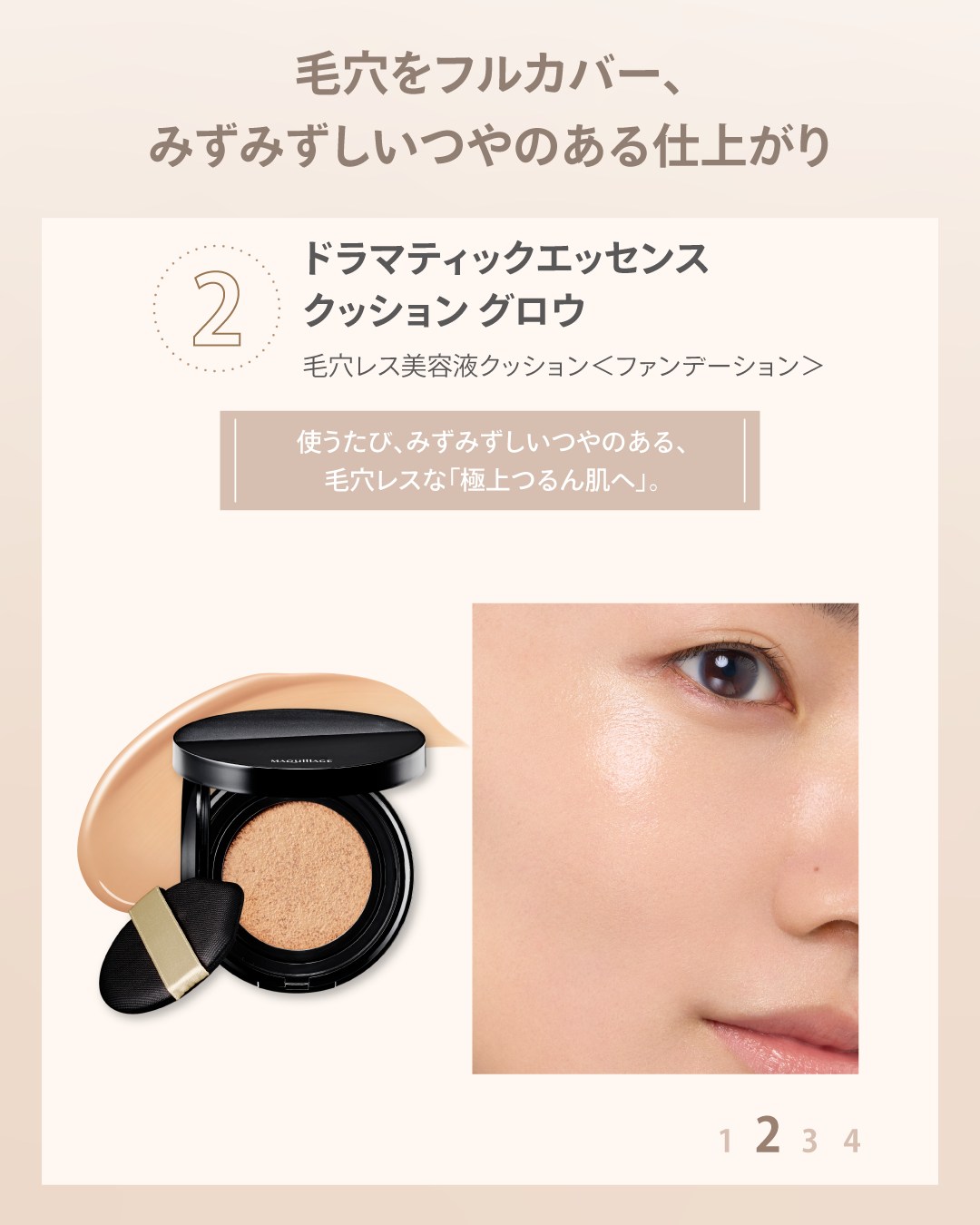 カバーだけじゃない!極上つるん肌◎ マキアージュの毛穴レス美容液リキッドファンデを丸ごと固めた新しいクッションファンデ。 ☑︎密着カバー×スキンケア乳化技術 ポンポンするだけで角層までうるおいが浸透。ジェリー膜が均一に肌をカバー&ピタッと密着...