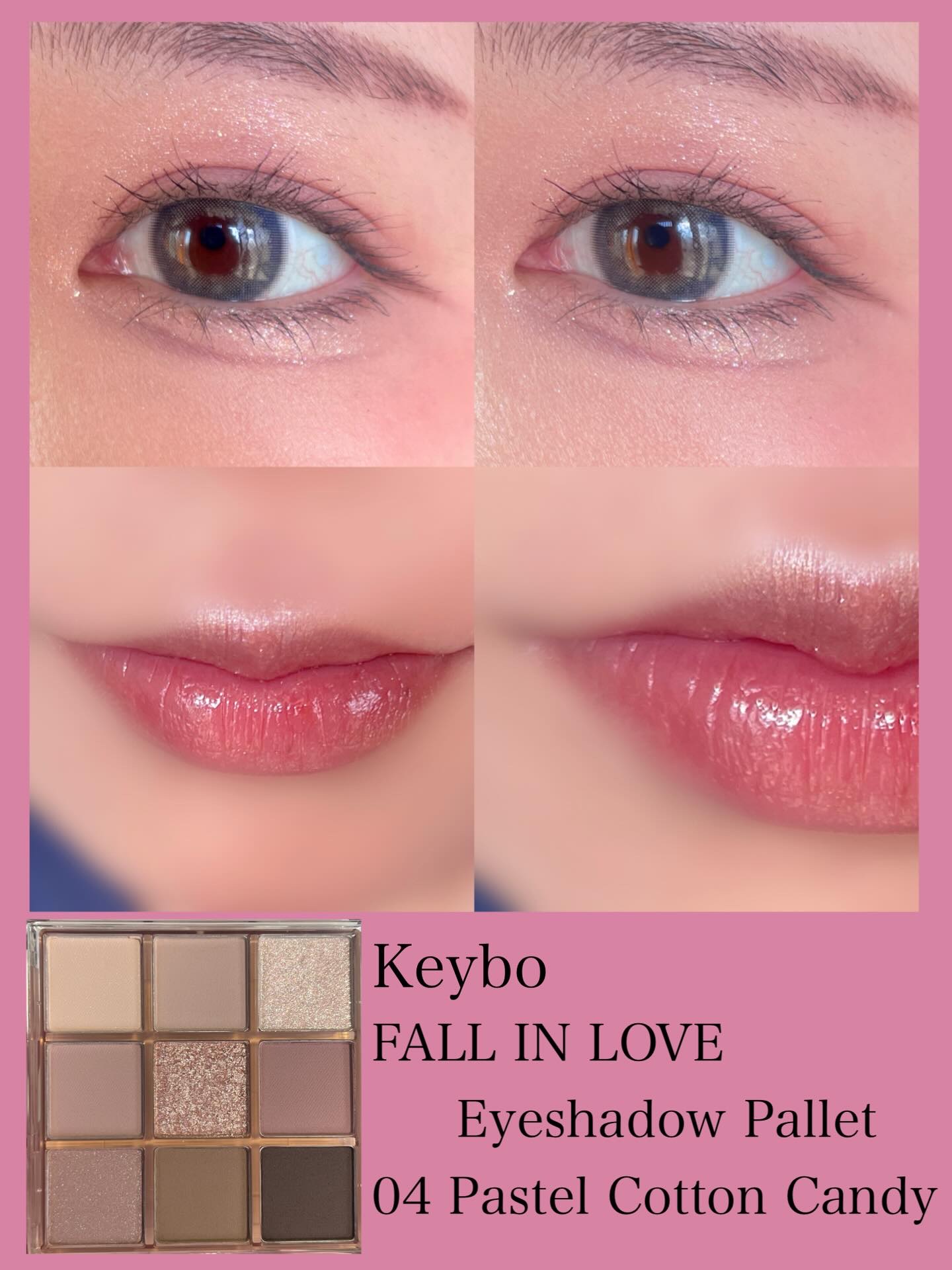 【ナチュラル陰影メイク】keyboKEYBOFALLINLOVESHADOWPALETTE04パステルコットンキャンディパステルピンクとラベンダー系の9色アイシャドウパレット薄づきのベースカラーとしっかり発色するアクセントカラー、大小様々なラ...