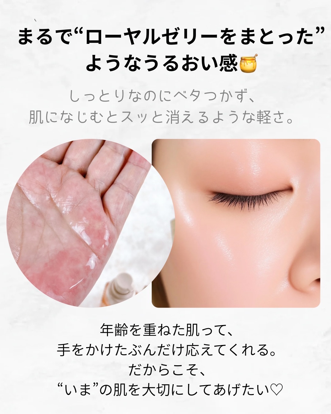 | とろりとしたテクスチャーで、肌にまろやかに伸びてしっとりと馴染み 潤うような使い心地☺️ | 詳細を見る | |