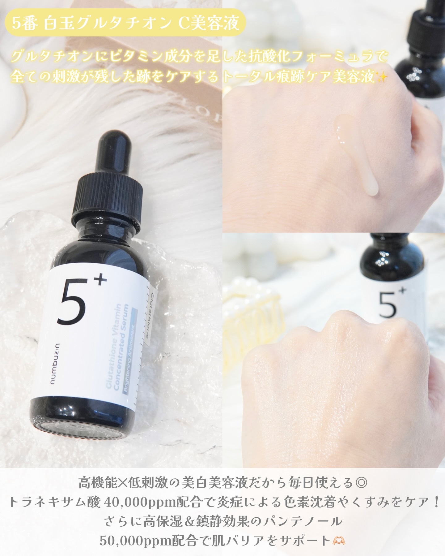 美白に本気私が最近ハマってる"最強美白ケア組み合わせ”を紹介🪽🫧スペシャル美白「5番集中美容液」+「5番パック」→ここぞ!日集中トーンアップにおすすめ🌱ナンバーズイン5番ライン使いシナジー効果がすごい☺️白玉肌目指すなら本気でおすすめ.......