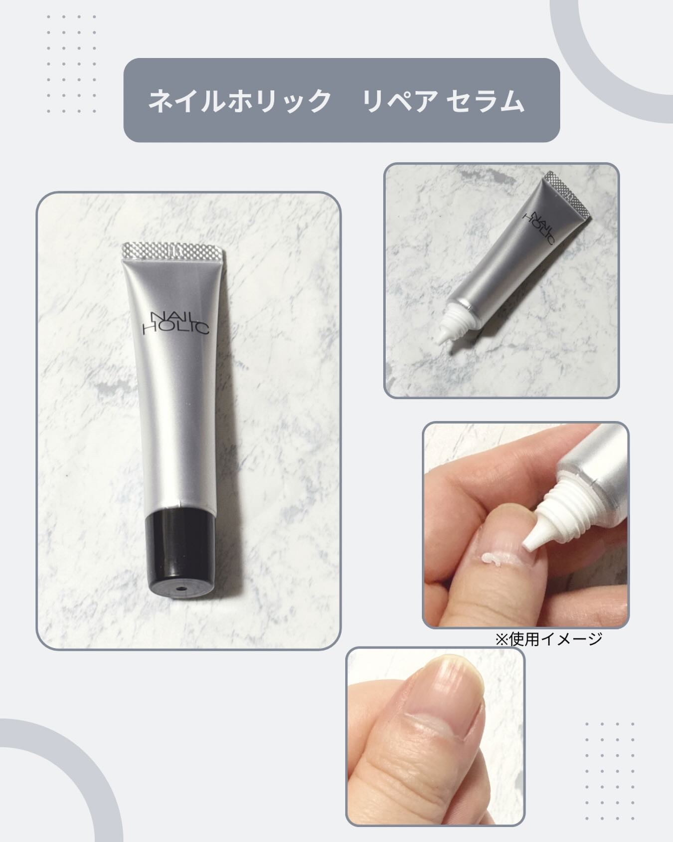 モニターとして使用しました。ネイルホリック リペアセラム容量/価格:15g/770円(税込)※価格は参考小売価格です(お店によって異なる場合があります)セラミド*1をはじめとするうるおい成分*2を贅沢に配合し、なめらかで美しい爪・指先を叶える...