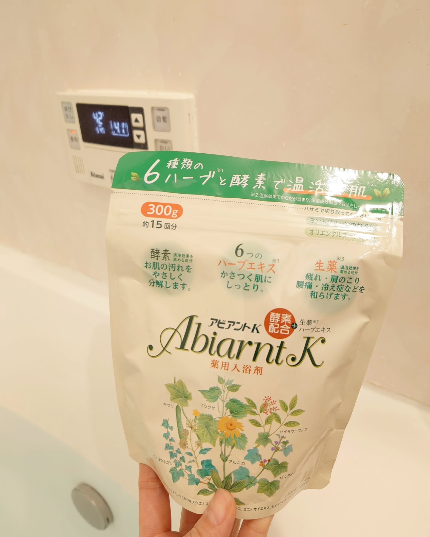 最近のお風呂タイムに使ってるお気に入りの入浴剤🚿商品名:アビアントK6種類のハーブ※1でお肌にうるおいを与えなめらかに保ってくれるんだそう🌿スプーンが付属していて使いやすいのがありがたい◎お湯にサッと溶けてくれて鮮やかなミントグリーンの湯色が...