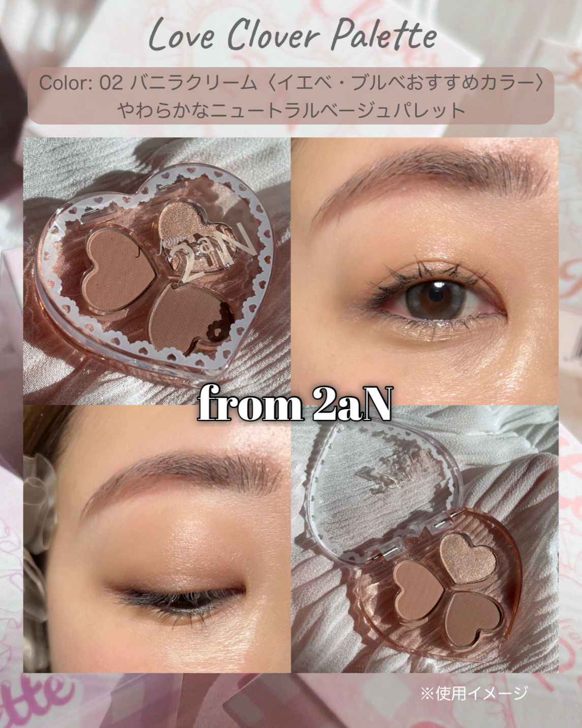 from2aN(@2an_official_jp)全国のセブンイレブンで12/10から数量限定発売🎉『ラブクローバーパレット』✨あの大人気アイパレットがハート型のミニサイズに💫2aNの定番アイパレと同じでグリッター可愛すぎる🩷3色で“ベース・...