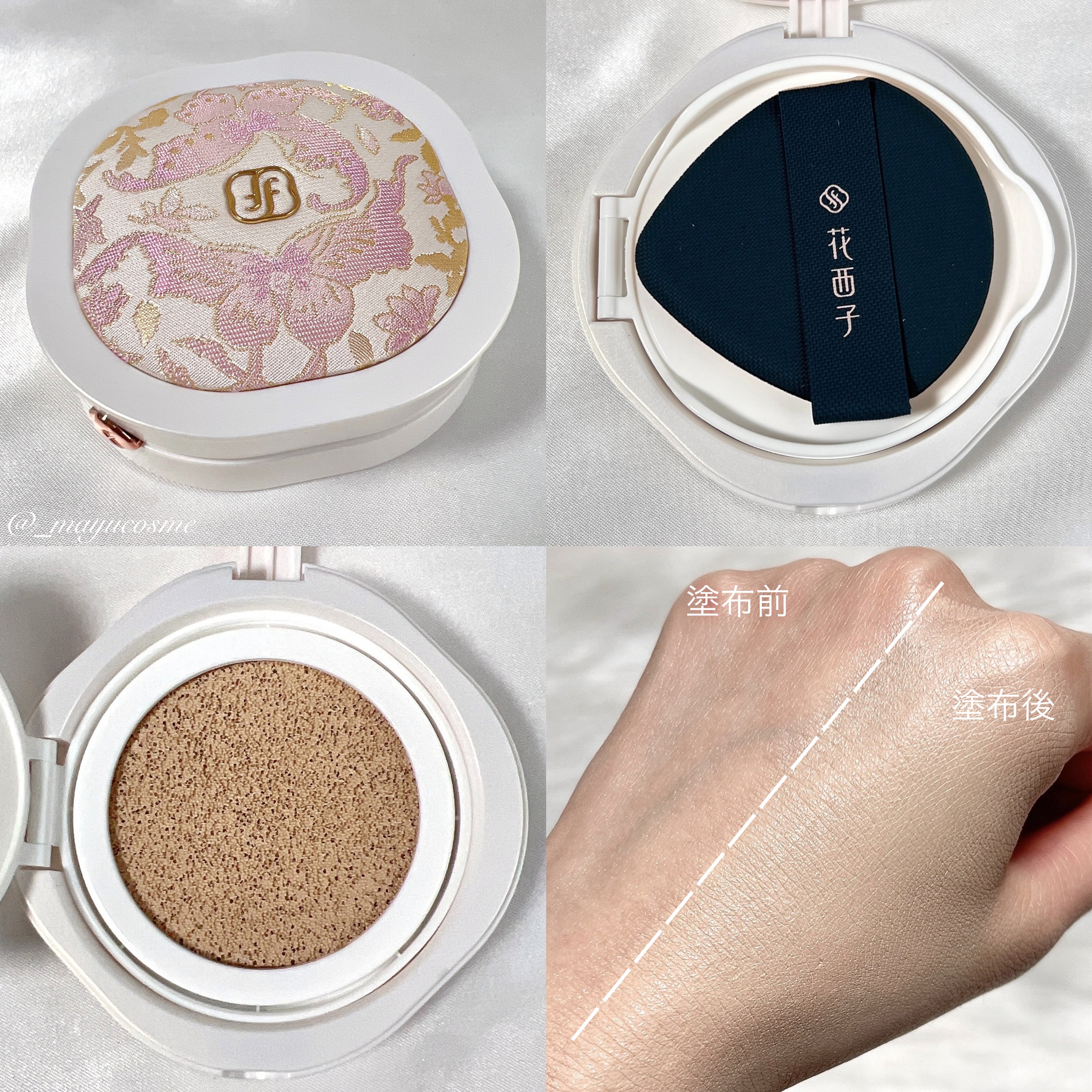 クッションファンデーションはN20!明るさはちょうど良いけど、ライトサマーの私にはちょっと黄色い😓 パープルのパウダーではたくと、黄色みが無くなってちょうど良くなる🙆🏻♀️💜 #中国コスメ #コスメ #パケ買いコスメ #花西子 #Florasis #クッションファンデ