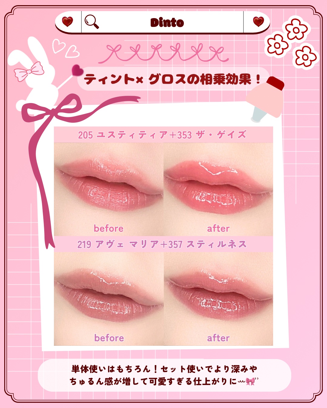 ![[バレンタインリミテッド]ブラーグローイミニリップティントデュオ / Dinto](https://cloudflare.lipscosme.com/image/6bb3cabf47dbcb7d0467937b-1739063814.png?auto=avif%2Cwebp&fio=1&orient=1&width=430)