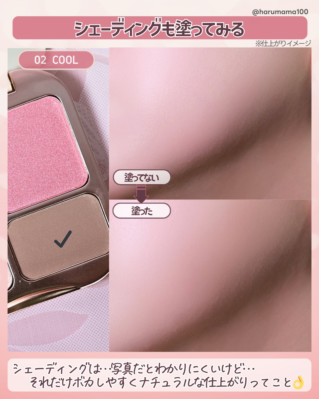 新色の「23 キューピッドピンク」は白みピンクの儚げな血色感で、透けるような奥行きとふんわり温かい雰囲気がかわいい〜♪ ミルキーカラーのリップとも相性が良いから出番が増えそう💕 テクスチャーはしっとりしていてグラデにしやすいし、なじませるとサラサラに変化するから、ベタつかずに使えた!