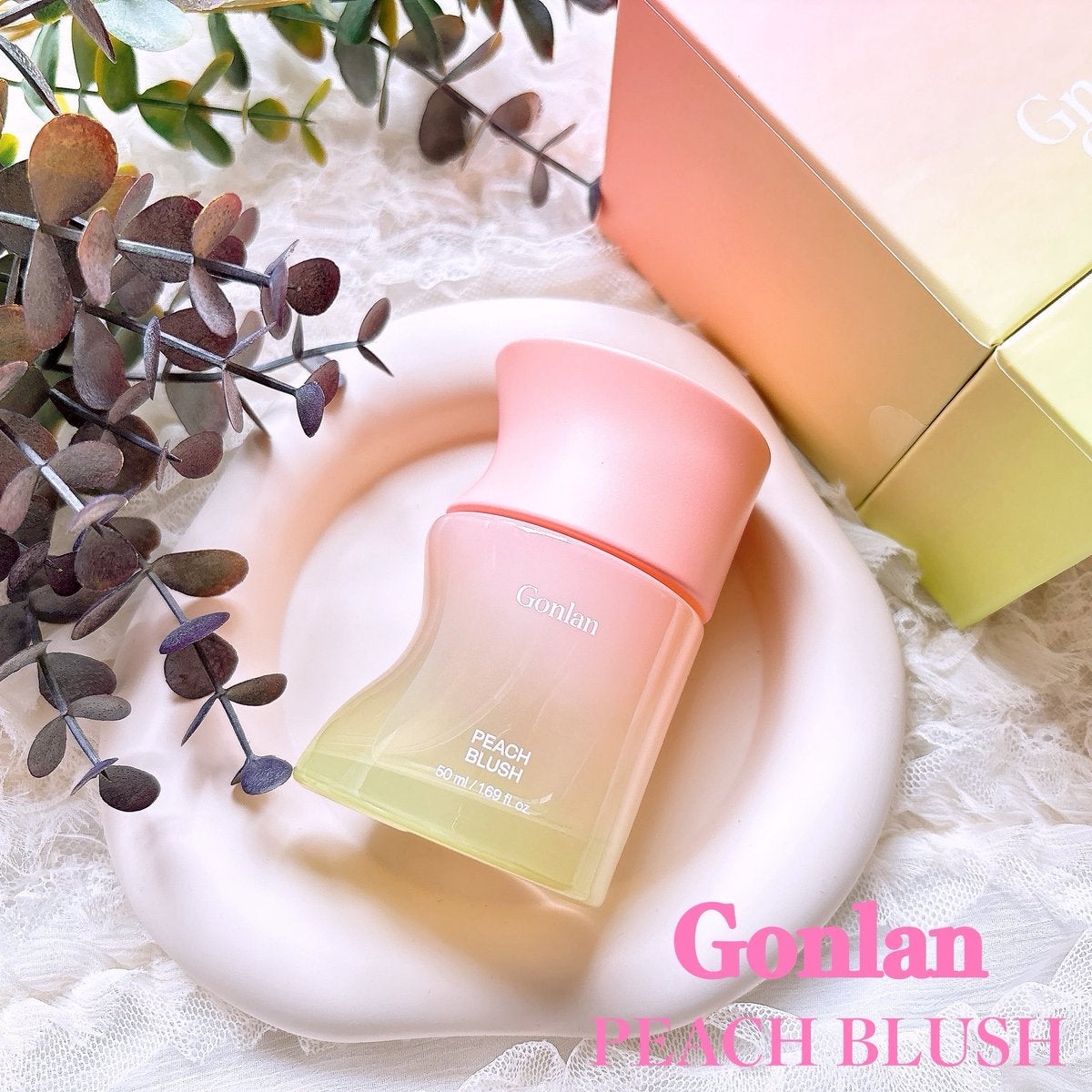*Gonlanピーチブラッシュ50ml*ご縁があり、Gonlanさまより商品提供をいただきました❤︎BOXとボトルのジューシーな桃みたいなグリーン×ピンクのグラデーションがかわいくて、使う前からきゅんとしちゃう💚🩷手首の内側や耳の後ろ、...