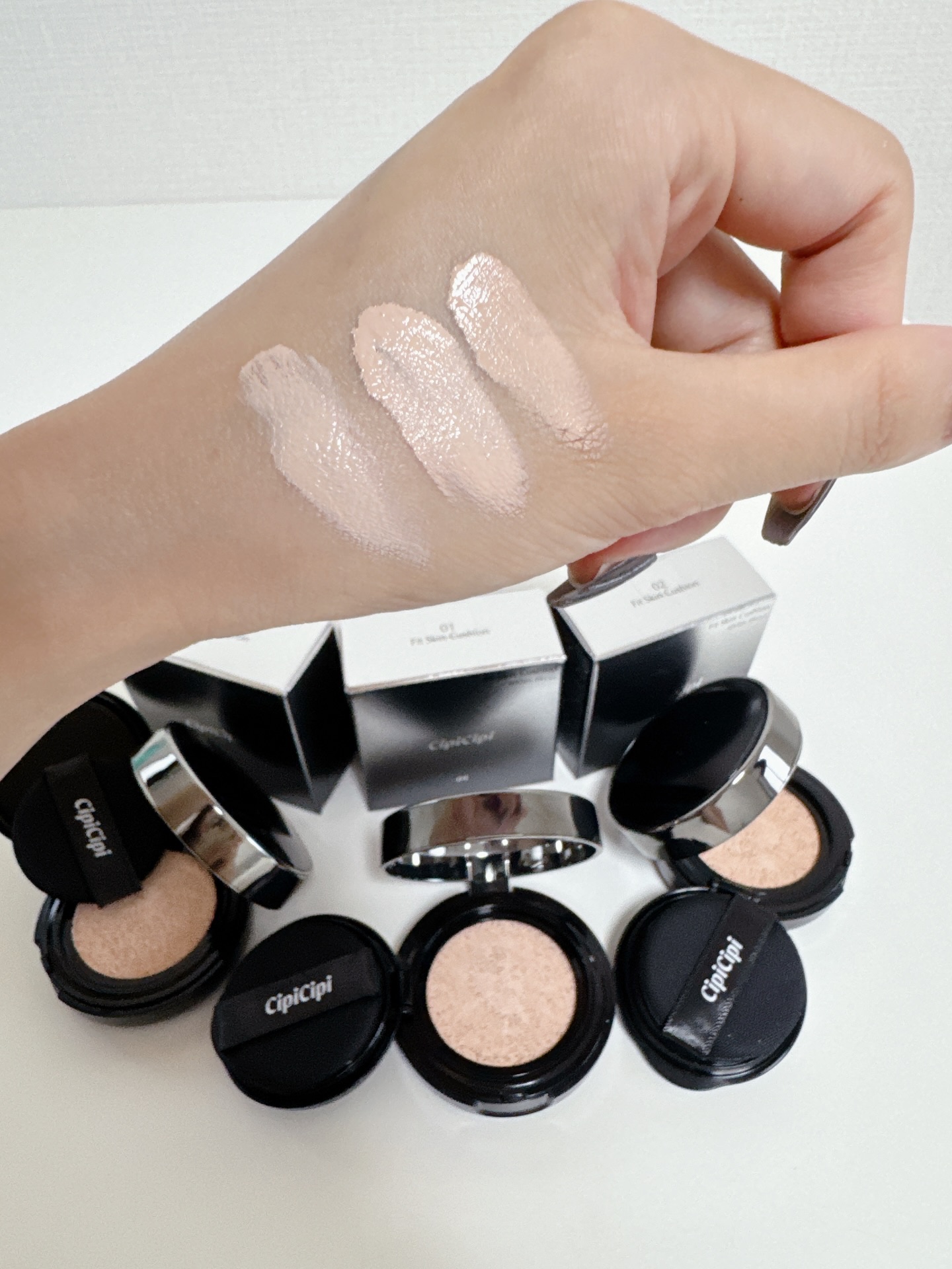 CipiCipiのクッションファンデがさらに崩れにくくなりパワーアップ🖤⚜️CipiCipiシピシピフィットスキンクッションRシピシピフィットスキンクッションRミニ00/01/02限定色の00はさらに明るい華やかなカラーなので、01をベースに...