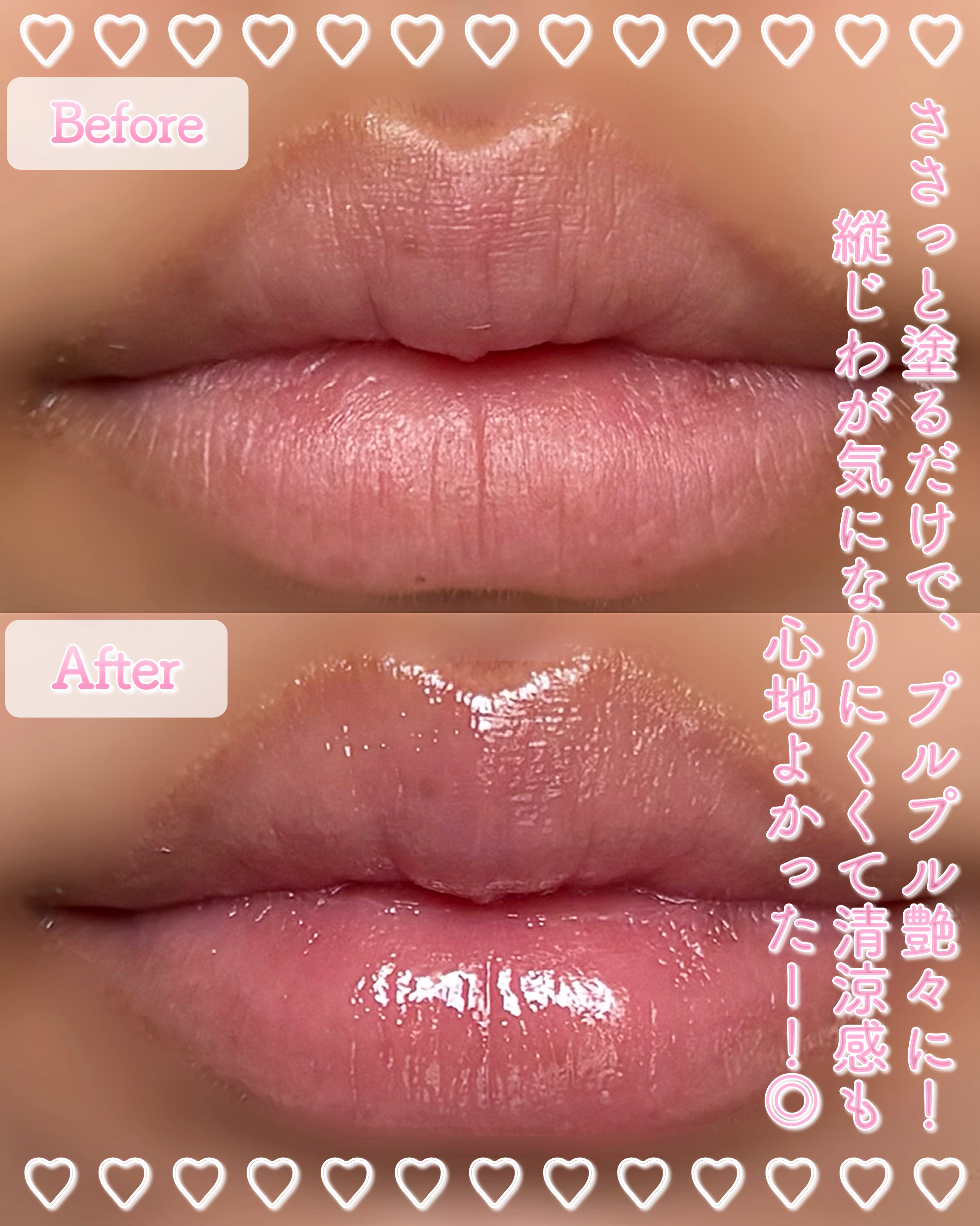 - <クリア> ダイマージリノール酸ダイマージリノレイル、(イソステアリン酸ポリグリセリル2/ダイマージリノール酸) コポリマー、ラノリン、オクチルドデカノール、ホホバ種子油、ジブチルラウロイルグルタミド、ミリスチン酸デキストリン、オリーブ果実油、ローヤルゼリーエキス、ハチミツ、パニリルブチル2、メントキシプロパンジオール、メントール、ハッカ葉油、レモン果皮油、ラバンデュラヒブリダ油、イタリアイトスギ葉/実/茎油、イソステアリン酸ソルビタン、ラブダナム油、ヒメマツバボタンエキス、ダマスクバラ花ロウ、ヤシ脂肪酸スクロース、パルミトイルトリペプチド-381、メトキシケイヒ酸エチルヘキシル、ペンチレングリコール、ポリシリコーン-15、t-ブチルメトキシジベンゾイルメタン、エチルヘキサン酸セテアリル、BG、水 <ヌードベージュ> ダイマージリノール酸ダイマージリノレイル、(イソステアリン酸ポリグリセリル2/ダイマージリノール酸) コポリマー、ラノリン、オクチルドデカノール、ホホバ種子油、ジブチルラウロイルグルタミド、ミリスチン酸デキストリン、メトキシケイヒ酸エチルヘキシル、ペンチレングリコール、トリイソステアリン酸ポリグリセリル-2、メントール、酸化チタン、ポリシリコーン-15、t-ブチルメトキシジベンゾイルメタン、酸化鉄、メントキシプロパンジオール、香料、赤104(1) 水酸化Al、バニリルブチル、オリーブ果実油、ハチミツ、ダマスクバラ花ロウ、エチルヘキサン酸セテアリル、BG、水、ハッカ葉油、レモン果皮油、ラバンデュラヒブリダ油、イタリアイトスギ葉/実/茎油、ヒメマツバボタンエキス、ラブダナム油、イソステアリン酸ソルビタン、ローヤルゼリーエキス、ヤシ脂肪酸スクロース、パルミトイルトリペプチド-38 <ベビーピンク> ダイマージリノール酸ダイマージリノレイル、イソステアリン酸ポリグリセリル2/ダイマージリノール酸)コポリマー、ラノリン、オクチルドデカノール、ホホバ種子油、ジブチルラウロイルグルタミド、ミリスチン酸デキストリン、メトキシケイヒ酸エチルヘキシル、ペンチレングリコール、メントール、トリイソステアリン酸ポリグリセリル-2、酸化チタン、ポリシリコーン-15、t-ブチルメトキシジベンゾイルメタン、メントキシプロパンジオール、香料、黄4、赤202、赤104 (1) 水酸化AI、赤201、バニリルブチル、オリーブ果実油、ダマスクバラ花ロウ、ハチミツ、エチルヘキサン酸セテアリル、BG、水、ハッカ葉油、レモン果皮油、ラバンデュラヒブリダ油、イタリアイトスギ葉/実/茎油、イソステアリン酸ソルビタン、ラブダナム油、ヒメマツバボタンエキス、ローヤルゼリーエキス、ヤシ脂肪酸スクロース、パルミトイルトリペプチド-38 <プラムレッド> ダイマージリノール酸ダイマージリノレイル、(イソステアリン酸ポリグリセリル2/ダイマージリノール酸)コポリマー、ラノリン、オクチルドデカノール、ホホバ種子油、ジブチルラウロイルグルタミド、ミリスチン酸デキストリン、メトキシケイヒ酸エチルヘキシル、ペンチレングリコール、メントール、トリイソステアリン酸ポリグリセリル-2、t-ブチルメトキシジベンゾイルメタン、ポリシリコーン-15、赤202、メントキシプロパンジオール、グンジョウ、香料、赤104(1)、黄4、バニリルプチル2、オリーブ果実油、ハチミツ、ダマスクバラ花ロウ、エチルヘキサン酸セテアリル、BG、水、ハッカ葉油、レモン果皮油、ラバンデュラヒブリダ油、イタリアイトスギ葉/実/莖油、ヒメマツバボタンエキス、ラブダナム油、イソステアリン酸ソルビタン、ローヤルゼリーエキス、ヤシ脂肪酸スクロース、パルミトイルトリペプチド-38 <ロゼピンク> ダイマージリノール酸ダイマージリノレイル、(イソステアリン酸ポリグリセリル2/ダイマージリノール酸) コポリマー、ラノリン、オクチルドデカノール、ホホバ種子油、ジブチルラウロイルグルタミド、ミリスチン酸デキストリン、オリーブ果実油、ローヤルゼリーエキス、ハチミツ、バニリルプチル2、メントキシプロパンジオール、メントール、ハッカ葉油、レモン果皮油、ラバンデュラヒブリダ油、イタリアイトスギ葉/実/莖油 イソステアリン酸ソルビタン、ラブダナム油、ヒメマツバボタンエキス、ダマスクバラ花ロウ、ヤシ脂肪酸スクロース、パルミトイルトリペプチド-381、メトキシケイヒ酸エチルヘキシル、ペンチレングリコール、トリイソステアリン酸ポリグリセリル-2、エチルヘキサン酸セテアリル、BG、水、酸化チタン、ホウケイ酸(Ca/Al)、ポリシリコー15、t-ブチルメトキシジベンゾイルメタン、合成フルオロフロゴパイト、黄4、赤202、赤104 (1) シリカ、赤201、酸化鉄、水酸化Al、酸化スズ、香料