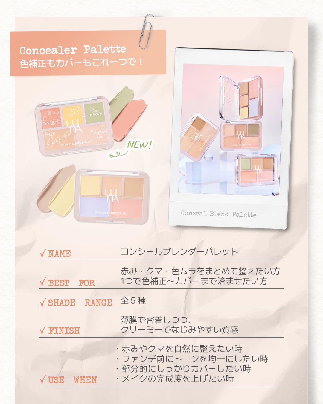 【これ1つでコンプレックスをカバー🔰✨】1つのパレットでカバーからカラーコントロールまで叶うコンシールブレンダーパレット🌟くすみからフェイスラインの引き締まりまでどんな肌悩みも徹底カバーします💖カバーする部分によって最適化されたマルチテクスチ...