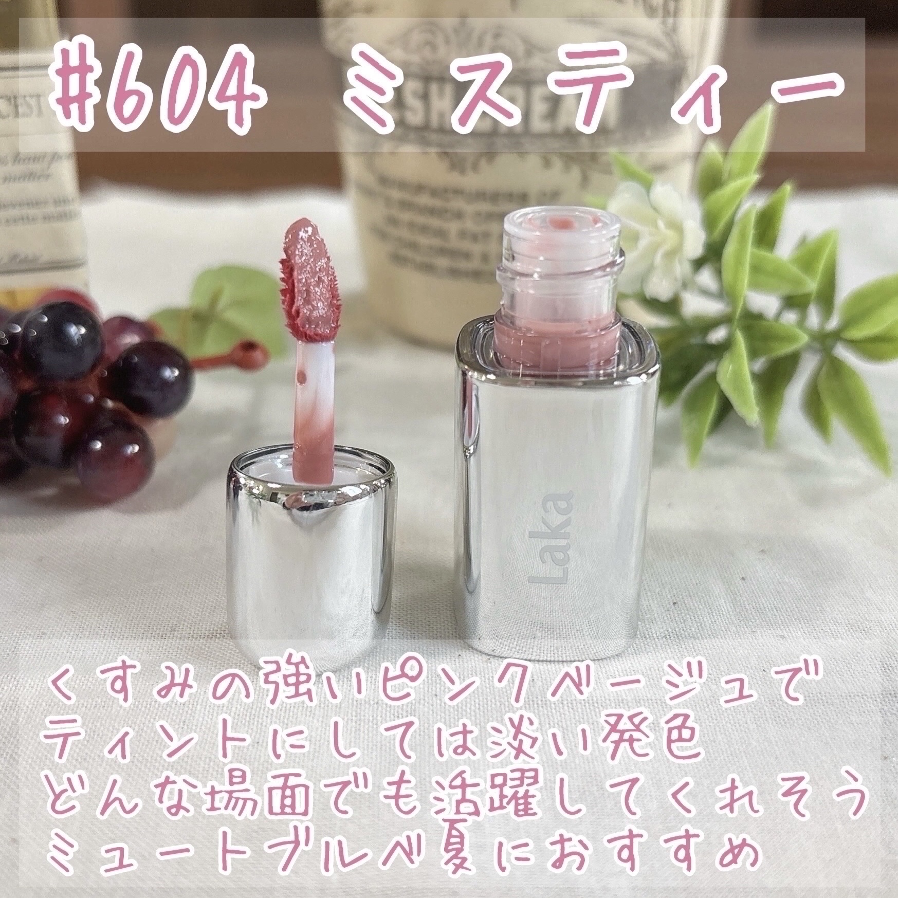 バズり散らかしているLakaのマキシグレイヤーティント。期待通りのかわいさで頭抱えました🤦♀️ツヤ感もむっちり感もすごいし、でもシアーな発色だから使いやすい!塗って暫くしてからティッシュオフすると色持ちも良かった!ブルベ冬な私は609のクラ...