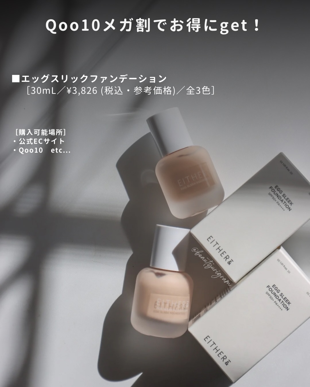 ✎*☑️EITHER&┆EGGSLEEKFOUNDATION 03BEIGE✎*EITHER&から美容液ファンデが新登場🐣🌟まるでスパ帰り・つるんとゆで卵のようなうるツヤ肌仕上がり✨️なめらかなつけ心地で薄膜なのに細かいところをカバーしてくれ...