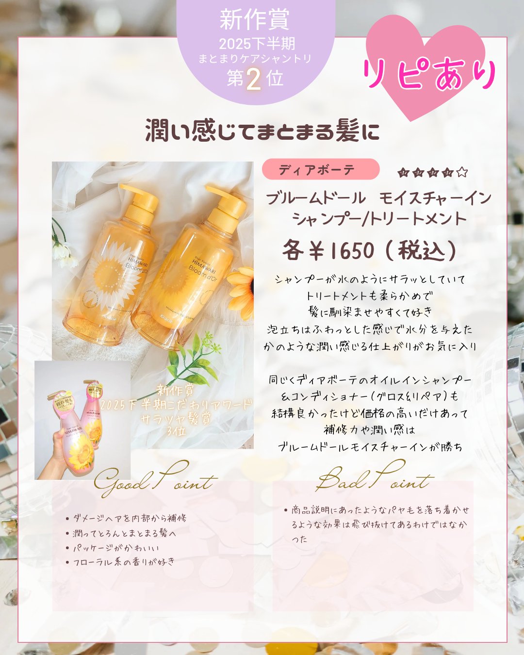 もっと見るおすすめアイテムディアボーテ×市販シャンプー