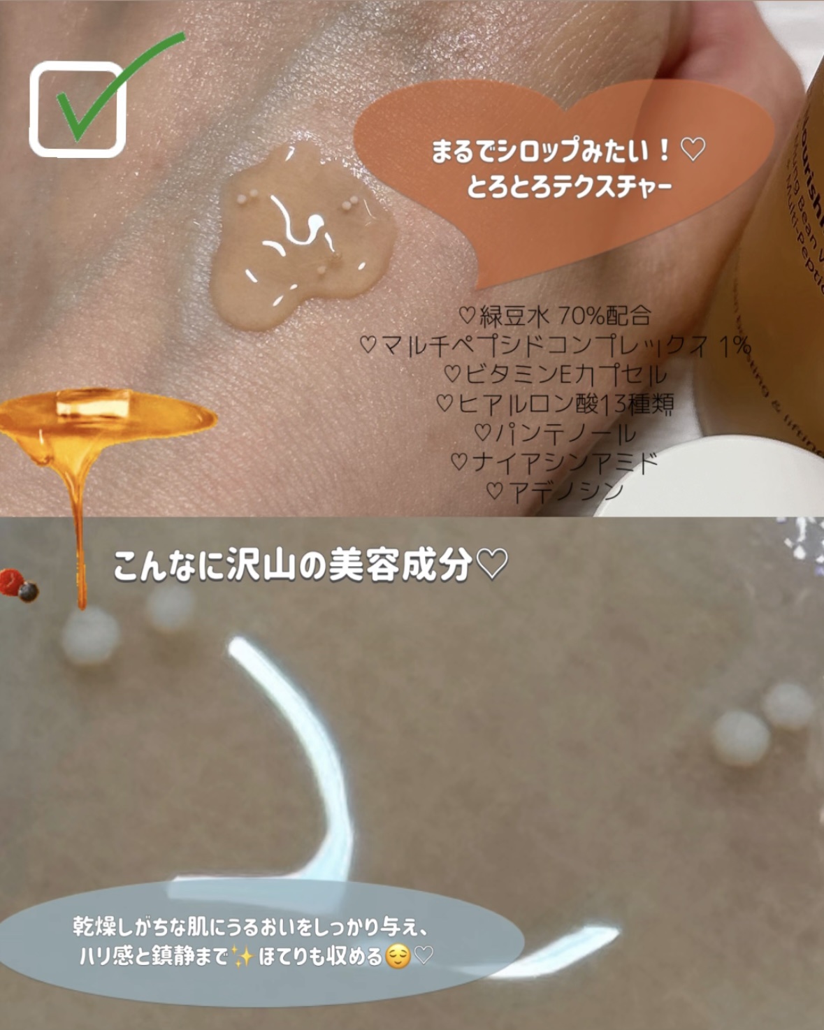 #PR@blithe_japan【8ナリシングビーンズエッセンス】🌿🫘✨8種の豆エキスたっぷり&緑豆水70%の“とろみ化粧水”。シロップみたいなとろとろテクスチャーで、乾燥して元気がない日のレスキューにぴったり🤍ビタミンEカプセルやペプチドも...