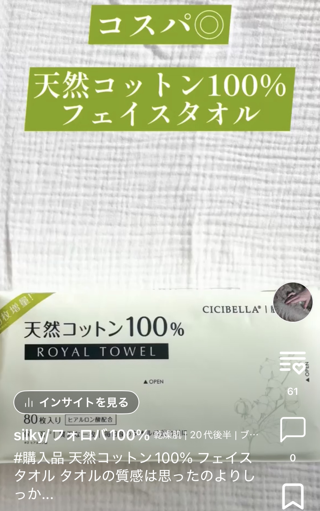 | 美容グッズ・美容家電ランキング第169位 | このフェイスタオル、 程よい厚みがあって濡れた肌に乗せても 破れにくく肌当たりもいい◎ | 詳細を見る | |