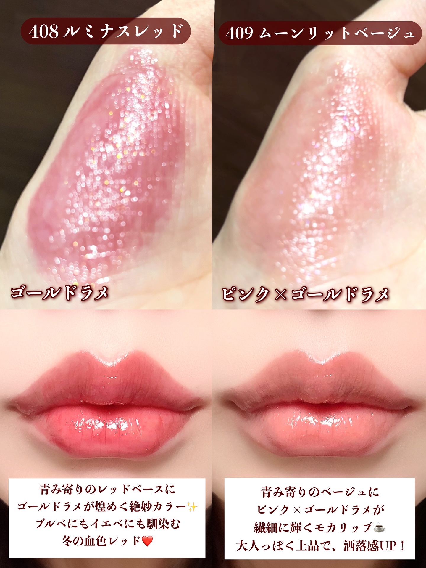 ラメ入りレッドリップ!ブルベ寄りかと思いましたが、塗ってみると、オレンジアイシャドウにも合いそうな……万能レッドリップ感♡オペラのティントは、もともと落ちにくくて、好きだけど♥ラメが控えめで、それもシーンを選ばない万能かな♥#リップティント#...